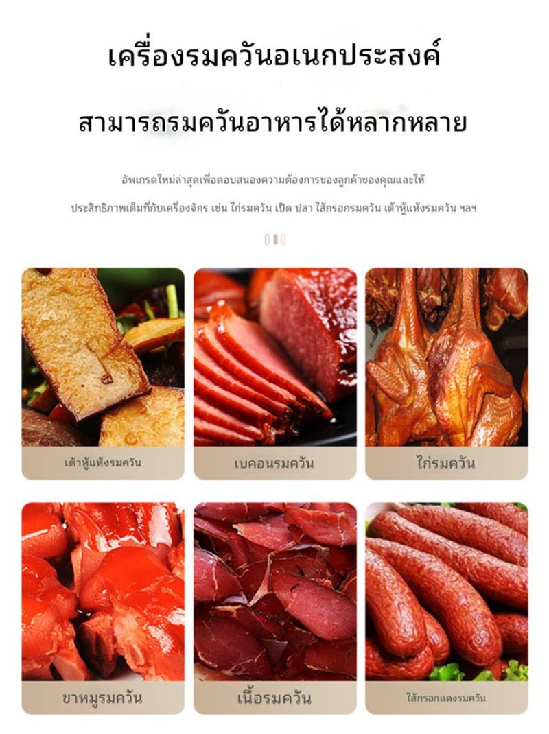 • ใช้พัดลมหมุนเวียนความร้อนและควันเพื่อให้อาหารรมควันสม่ำเสมอ
