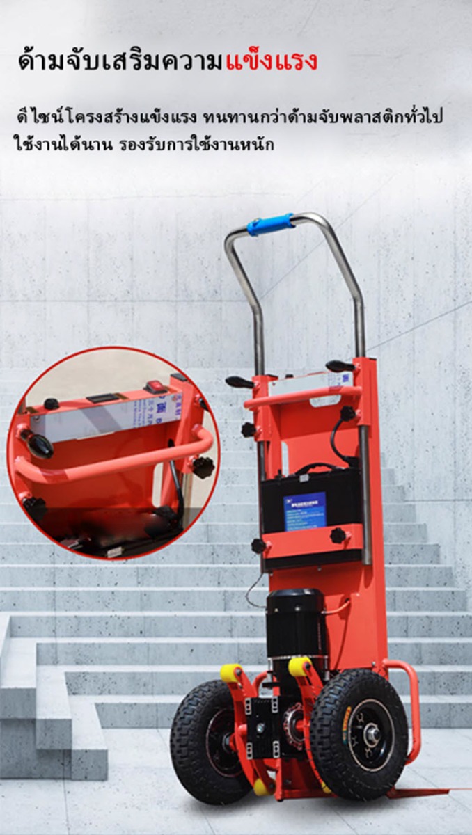 คุณกำลังรีวิว:เครื่องปีนบันไดไฟฟ้า 1200W แบตเตอรี่ลิเธียม 48V Electric Stair Climbing Hand Truck 1200W, 48V Lithium Battery