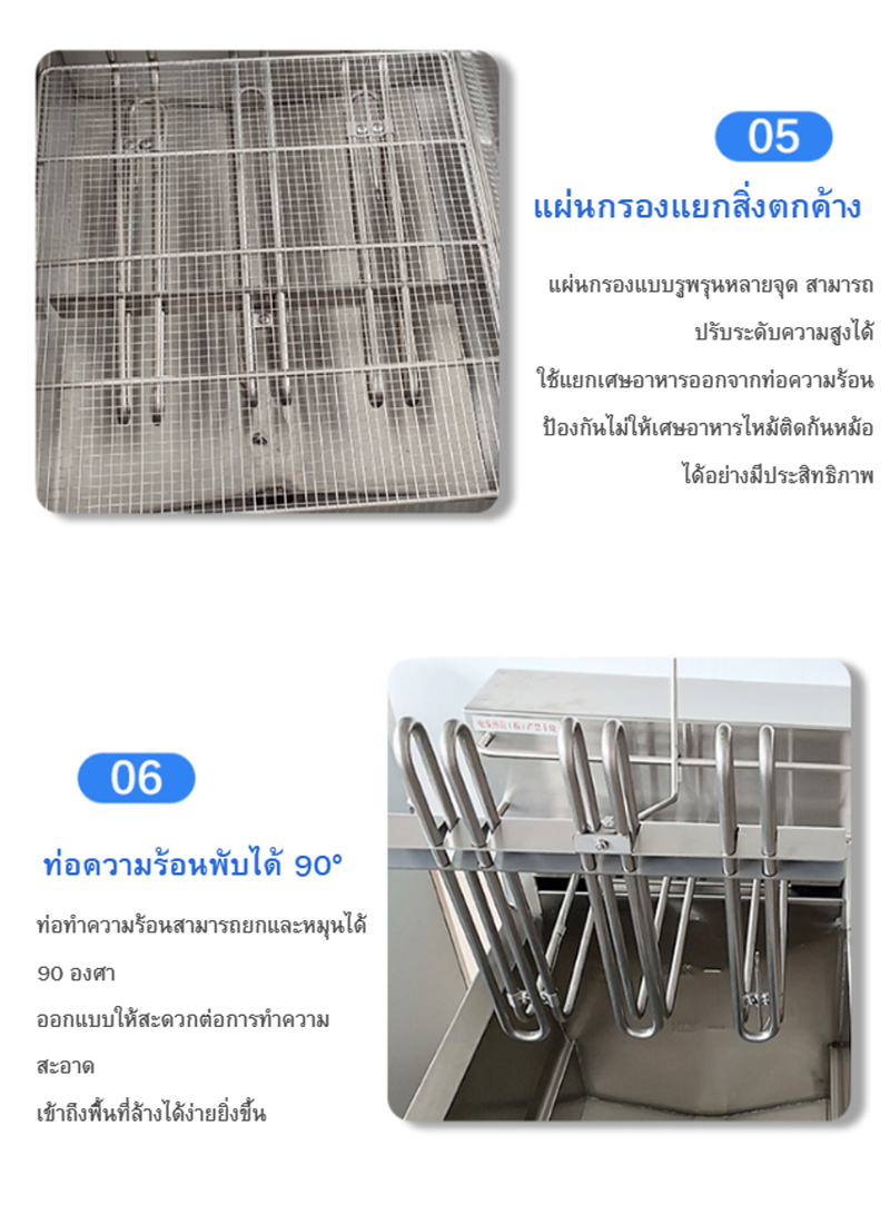 • ถอดตะแกรงและแผ่นกรองทำความสะอาดหลังใช้งานทุกครั้ง
