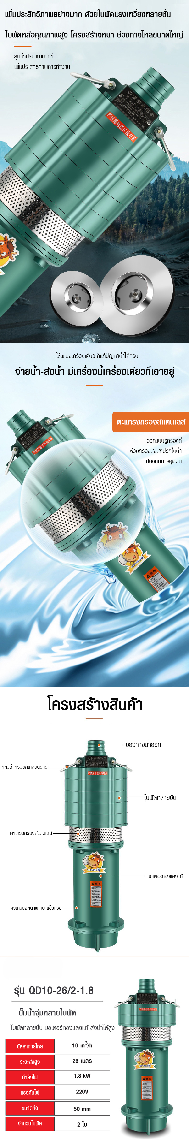 ปั๊มน้ำไดโว่ 2 ใบพัด รุ่น QD10-26 Submersible Pump 2inch 220V