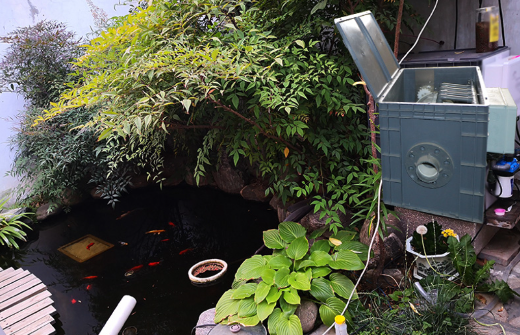 เครื่องกรองบ่อปลา ล้างอัตโนมัติ ไมโครฟิวเตอร์ ขนาดบ่อ 3 – 25 ตัน Fish pond drum filter koi pond