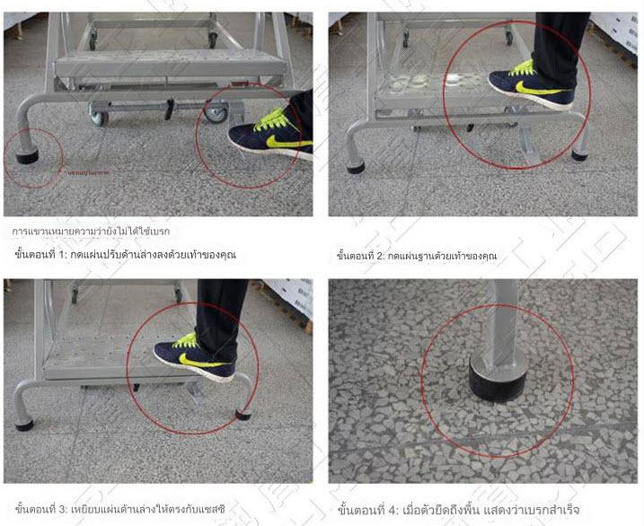■ การรวมกันของล้อตายตัว 2 ล้อ ล้ออเนกประสงค์ 2 ล้อ และแผ่นยาง 2 แผ่น ทำให้บันไดเคลื่อนย้ายได้ง่ายและปลอดภัยในการใช้งาน