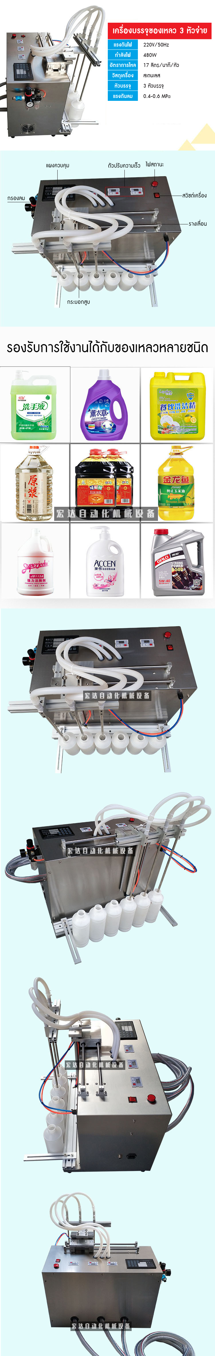 เครื่องบรรจุของเหลว แบบ 3 หัวจ่าย Quantitative Liquid Filling Machine เครื่องบรรจุของเหลว สำหรับขวดแกลลอน ขวดขนาดใหญ่