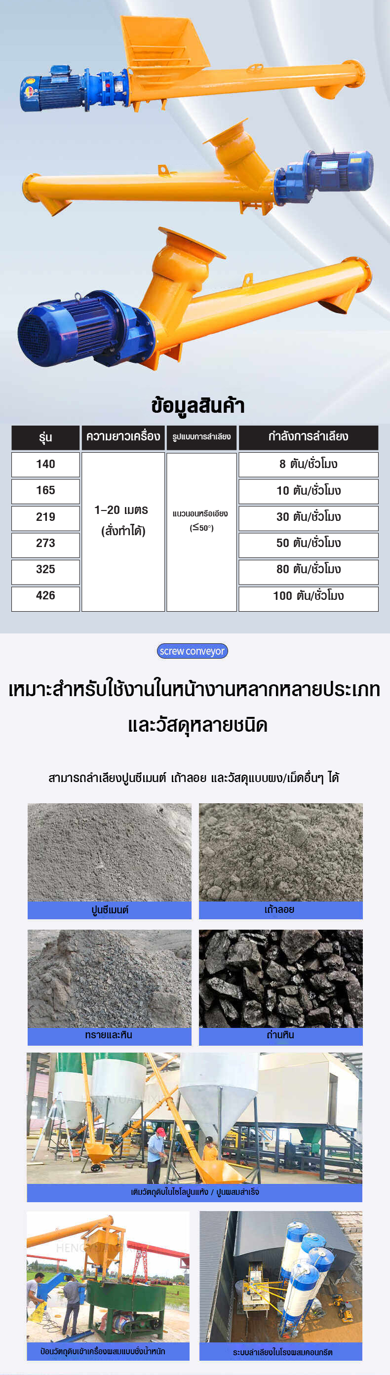 คุณกำลังรีวิว:เครื่องสกรูลำเลียง 6 เมตร รุ่น 273 Screw Conveyor 11kW 380V Adjustable Angle