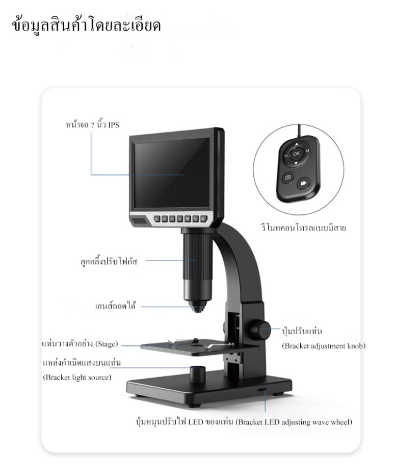 กล้องจุลทรรศน์ดิจิตอลหน้าจอ IPS ขนาด 7 นิ้ว ความละเอียด 1200W พิกเซล ขยายได้สูงสุด 2000X พร้อมไฟ LED ปรับความสว่างได้ หมาะสำหรับงานซ่อมอิเล็กทรอนิกส์ การศึกษา และการทดลองทางวิทยาศาสตร์