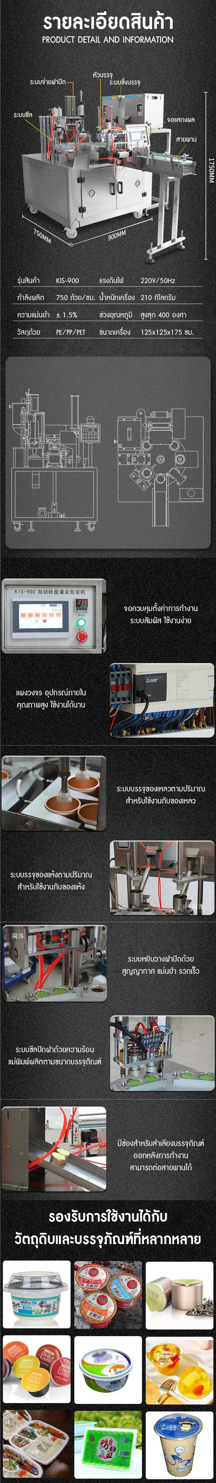 เครื่องซีลถ้วย ระบบอัตโนมัติ Automatic Cup Sealing Machine รุ่น KIS-900 กำลังผลิต 750 ถ้วนต่อนาที