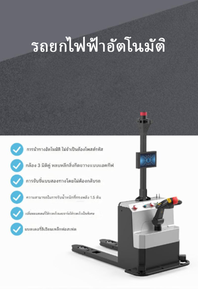รถยกไฟฟ้าอัตโนมัติขนาด 1.5 ตัน รุ่น BBOT15F ถูกออกแบบมาเพื่อการขนย้ายพาเลทอย่างชาญฉลาด มาพร้อมหน้าจอ 10.1 นิ้ว ระบบเลเซอร์นำทาง และระบบขับเคลื่อนไฟฟ้าเต็มรูปแบบ ใช้งานง่าย ประหยัดพลังงาน เหมาะสำหรับคลังสินค้าและระบบอัตโนมัติในโรงงาน