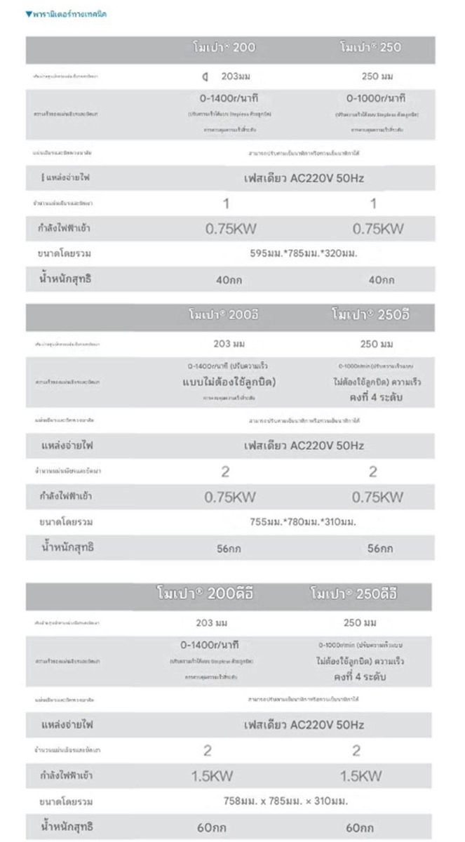 เส้นผ่าศูนย์กลางแผ่นขัด: φ250 มม.