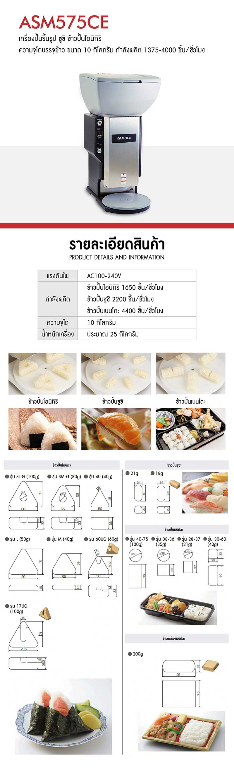 เครื่องปั้นข้าวปั้น Automatic Rice Ball Forming Machine รุ่น ASM575CE เครื่องปั้นซูชิอัตโนมัติ