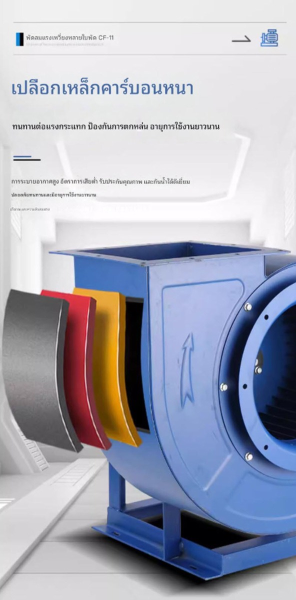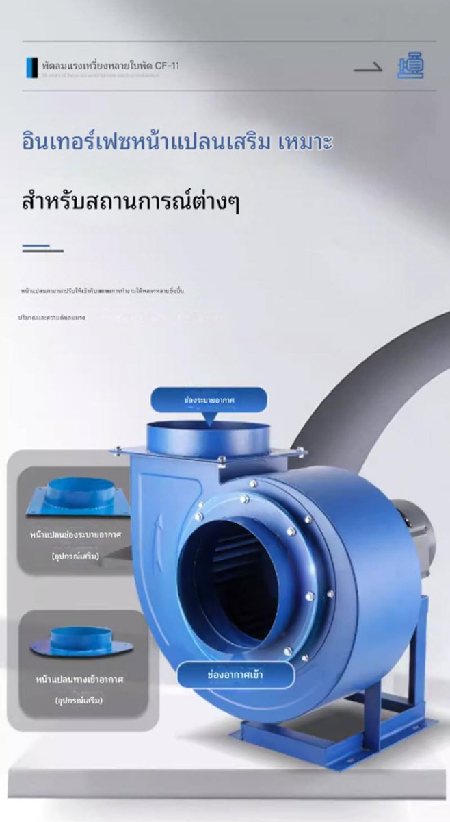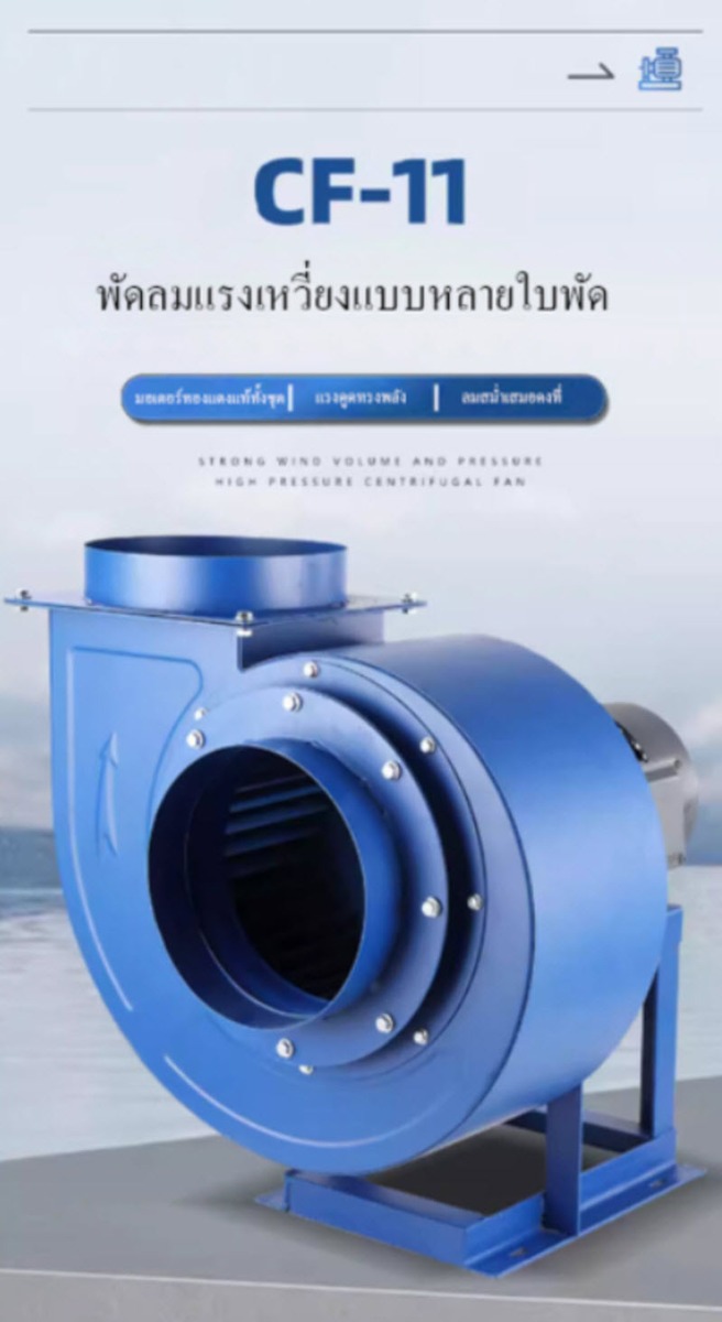 พัดลมแรงเหวี่ยง (Centrifugal Fan) รุ่น CF-11 รุ่น 2A กำลัง 0.25 kW ออกแบบสำหรับงานระบายอากาศและดูดอากาศในระบบอุตสาหกรรม ให้ปริมาณลมสม่ำเสมอ แรงดันลมเหมาะกับการใช้งานร่วมกับท่อและระบบดักฝุ่น รองรับแรงดันไฟ 220V และ 380V เหมาะสำหรับโรงงาน คลังสินค้า และระบบระบายอากาศทั่วไป