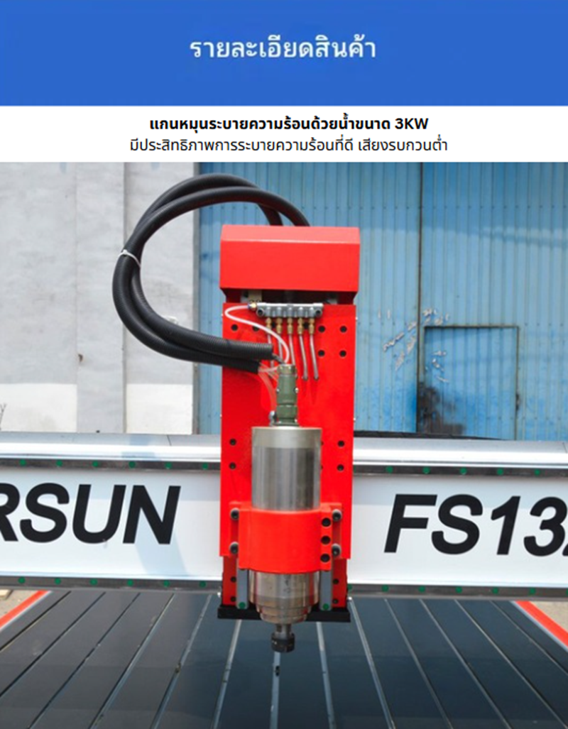 เครื่องแกะสลักไม้ CNC FS1325 – เครื่อง CNC ประสิทธิภาพสูงสำหรับงานแกะสลักและตัดไม้ เหมาะสำหรับอุตสาหกรรมงานไม้ เฟอร์นิเจอร์ และงานออกแบบที่ต้องการความละเอียด โครงสร้างแข็งแรง มาพร้อมมอเตอร์แกนหมุนทรงพลังและระบบควบคุมที่ใช้งานง่าย ช่วยเพิ่มประสิทธิภาพการผลิตและความแม่นยำสูง รองรับงานทั้งขนาดเล็กและขนาดใหญ่