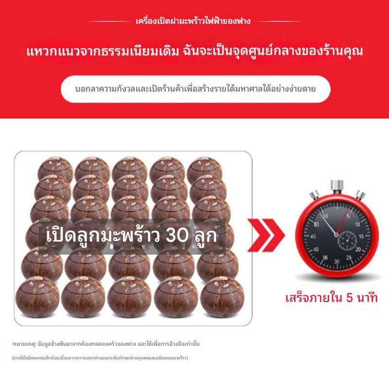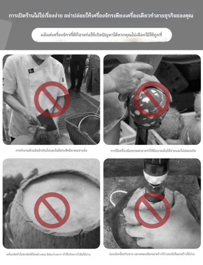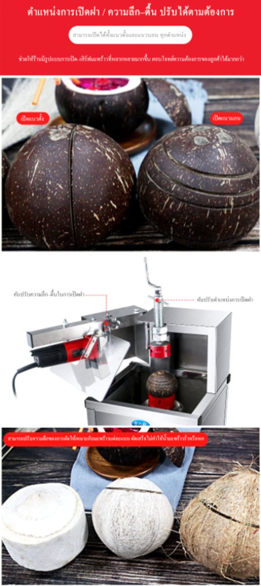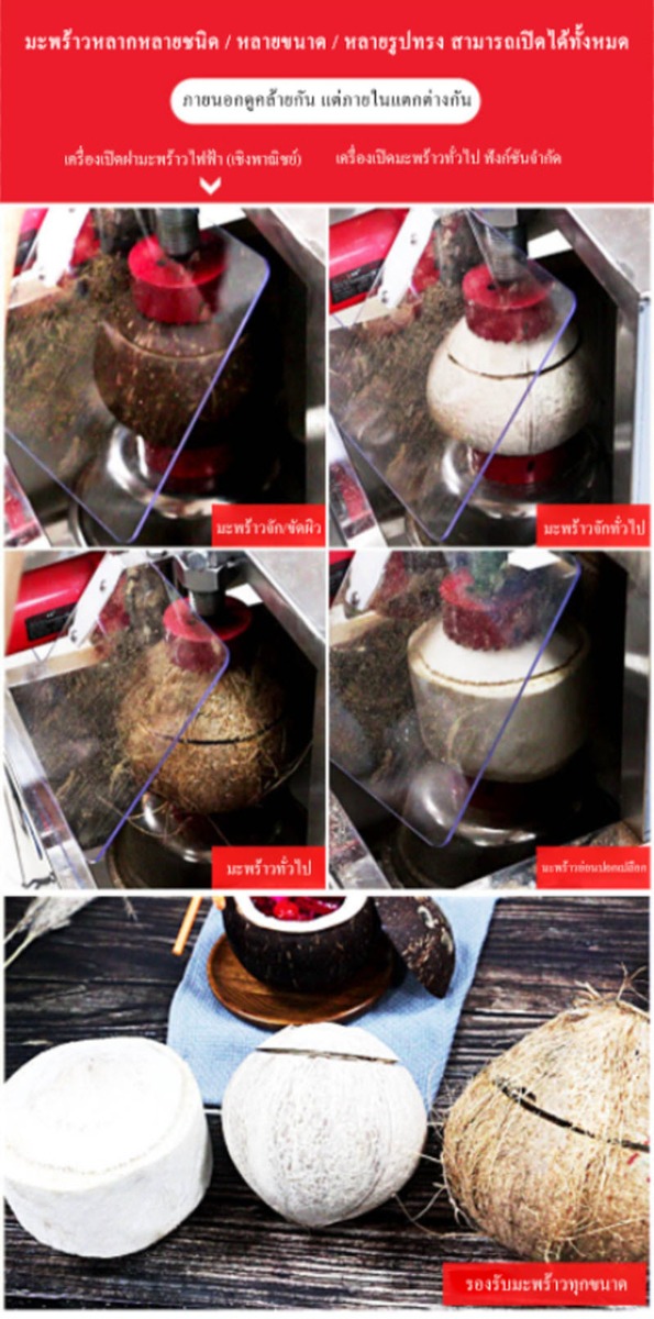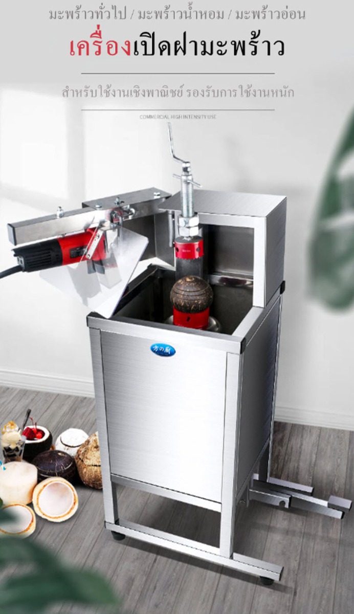 เครื่องปอกเปลือกมะพร้าวแบบกึ่งอัตโนมัติ กำลังไฟ 750W ใช้งานรวดเร็วภายในไม่กี่วินาที ช่วยลดแรงงาน เพิ่มความปลอดภัย เหมาะสำหรับร้านค้า โรงงานแปรรูป และผู้ประกอบการที่ต้องการความเร็วและความสม่ำเสมอในการปอกมะพร้าว