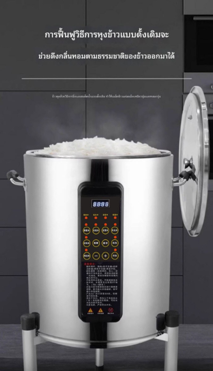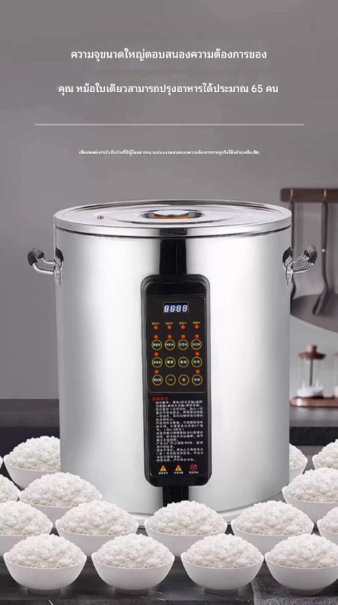 หม้อหุงข้าวเชิงพาณิชย์ระบบอัจฉริยะ ความจุขนาดใหญ่ 45 ลิตร ควบคุมการทำงานด้วยระบบดิจิทัล หุงข้าวได้สุกสม่ำเสมอ ประหยัดเวลาและแรงงาน เหมาะสำหรับร้านอาหาร โรงแรม โรงครัวกลาง และงานจัดเลี้ยงขนาดใหญ่
