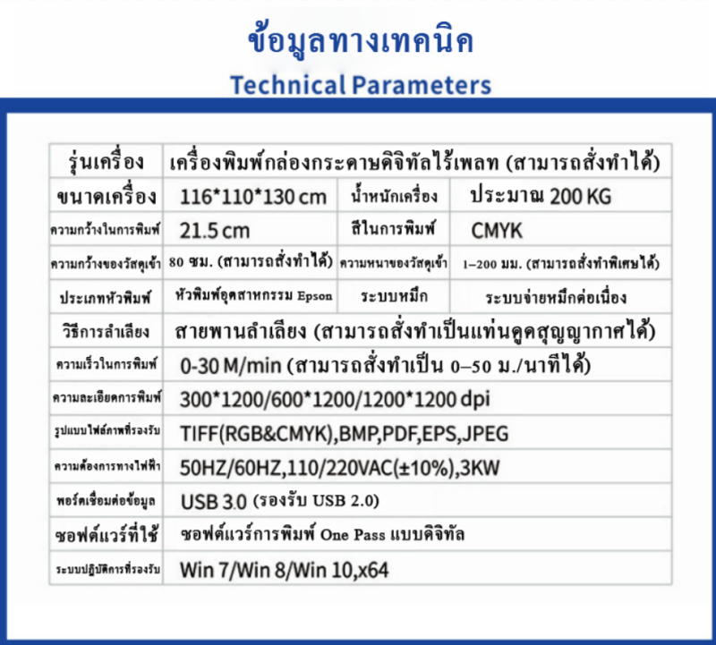 พื้นที่ในการพิมพ์ ประมาณ 50 cm