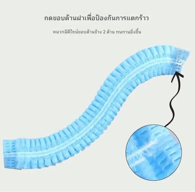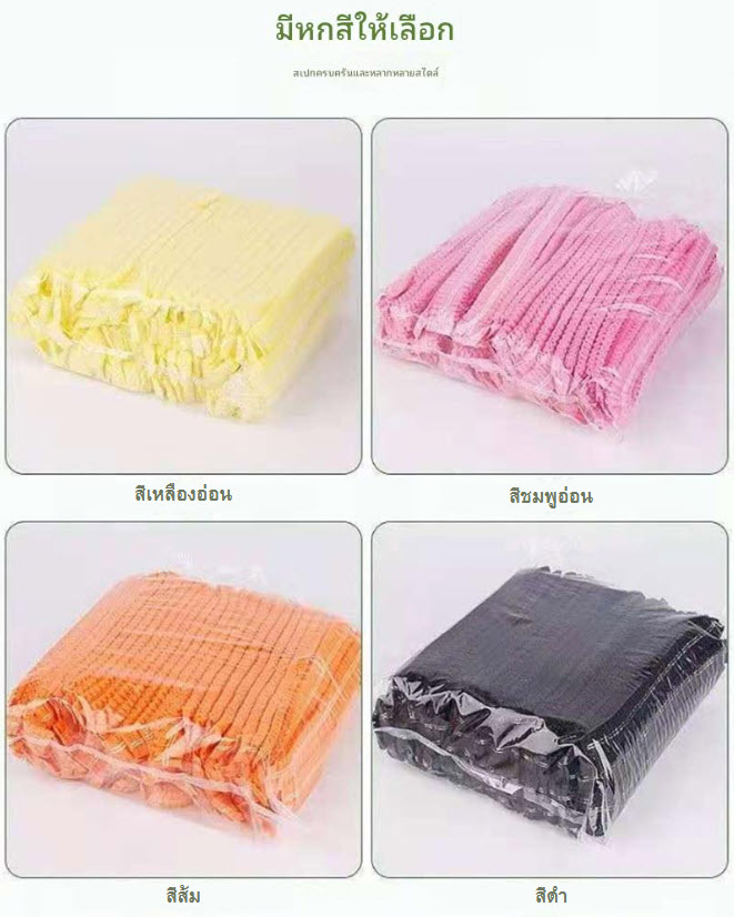 หมวกคลุมผมแบบใช้แล้วทิ้ง ผลิตจากวัสดุใยสังเคราะห์ไม่ทอ น้ำหนักเบา ระบายอากาศได้ดี
