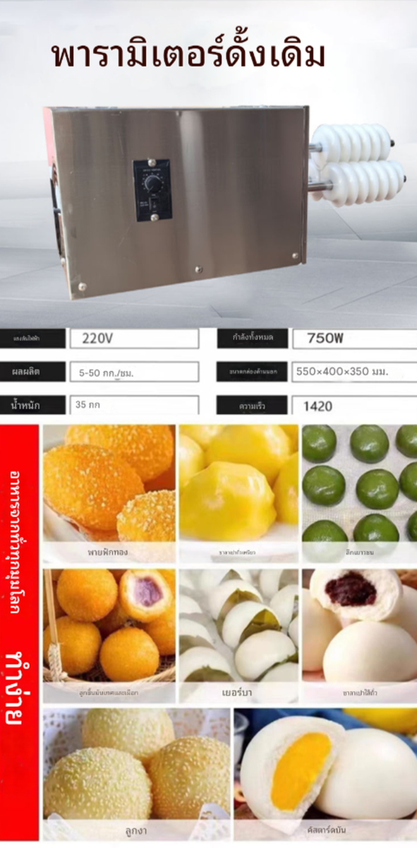 เครื่องจะทำการแบ่งแป้งและปั้นเป็นลูกกลมโดยอัตโนมัติ