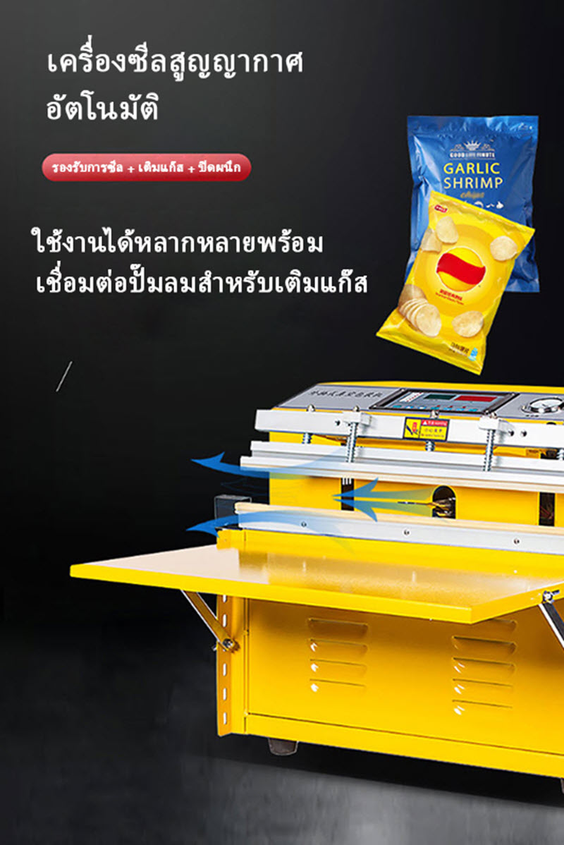 เครื่องซีลสูญญากาศอุตสาหกรรมแบบพ่นเคลือบ แข็งแรง ทนทาน เหมาะสำหรับซีลปิดถุงสูญญากาศขนาดใหญ่ รองรับการเติมก๊าซอัตโนมัติ ใช้งานง่ายช่วยถนอมอาหารและป้องกันความชื้น ใช้ได้ทั้งอุตสาหกรรมอาหาร การเกษตร และบรรจุภัณฑ์ทั่วไป