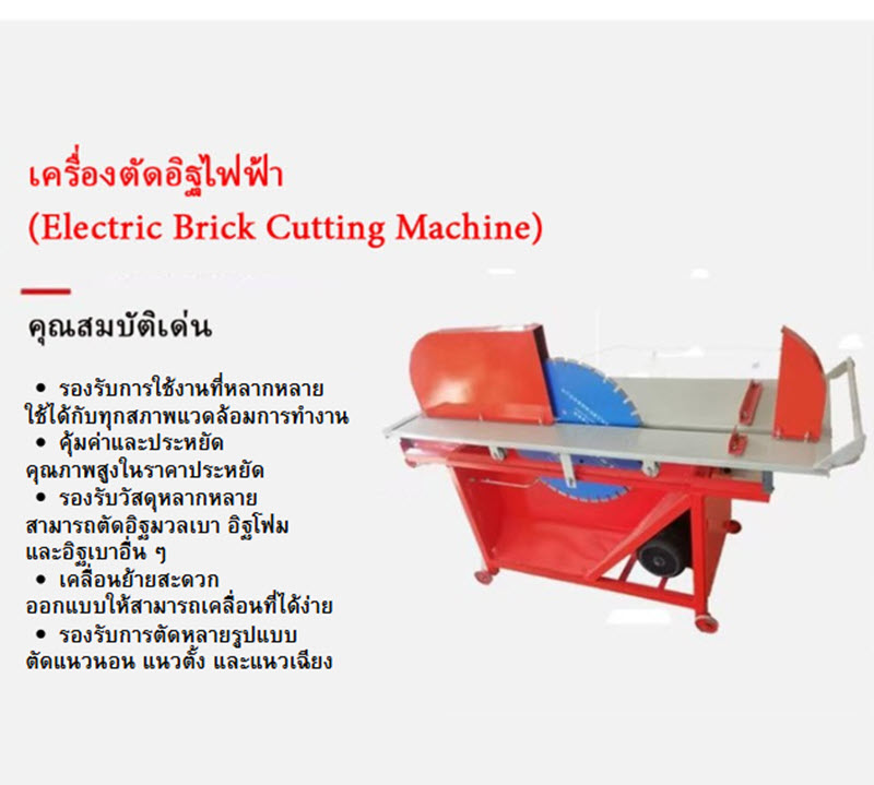เครื่องตัดอิฐไฟฟ้าประสิทธิภาพสูง มาพร้อมมอเตอร์ทองแดงกำลัง 4kW และใบเลื่อยขนาด 600 มม. รองรับแหล่งจ่ายไฟ 3 เฟส 380V เหมาะสำหรับงานตัดอิฐมวลเบา อิฐโฟม และวัสดุก่อสร้างอื่น ๆ