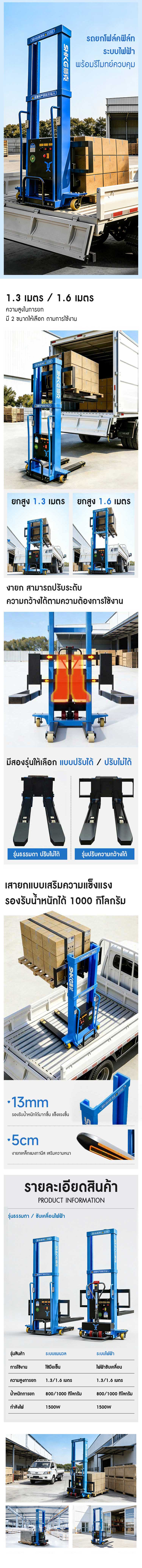รถยกโฟล์คลิฟท์ไฟฟ้า Electric Forklift Stacker พร้อมรีโมทย์ควบคุม แบบไร้สาย 0.8 ตัน 1 ตัน 1.2 ตัน