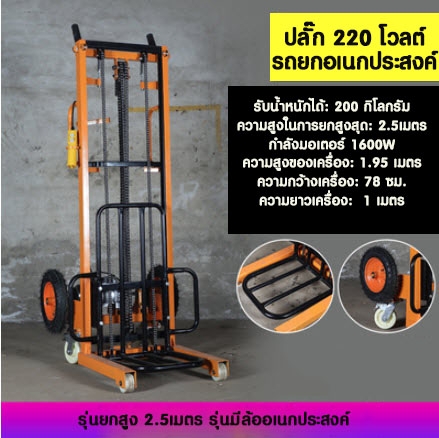 11. 220V รับน้ำหนัก 200 KG ยกสูงได้ 2.5 เมตร ความสูงเครื่อง1.95 เมตร 1600วัตต์ 0.78เมตร ความยาวเครื่อง 1.0เมตร