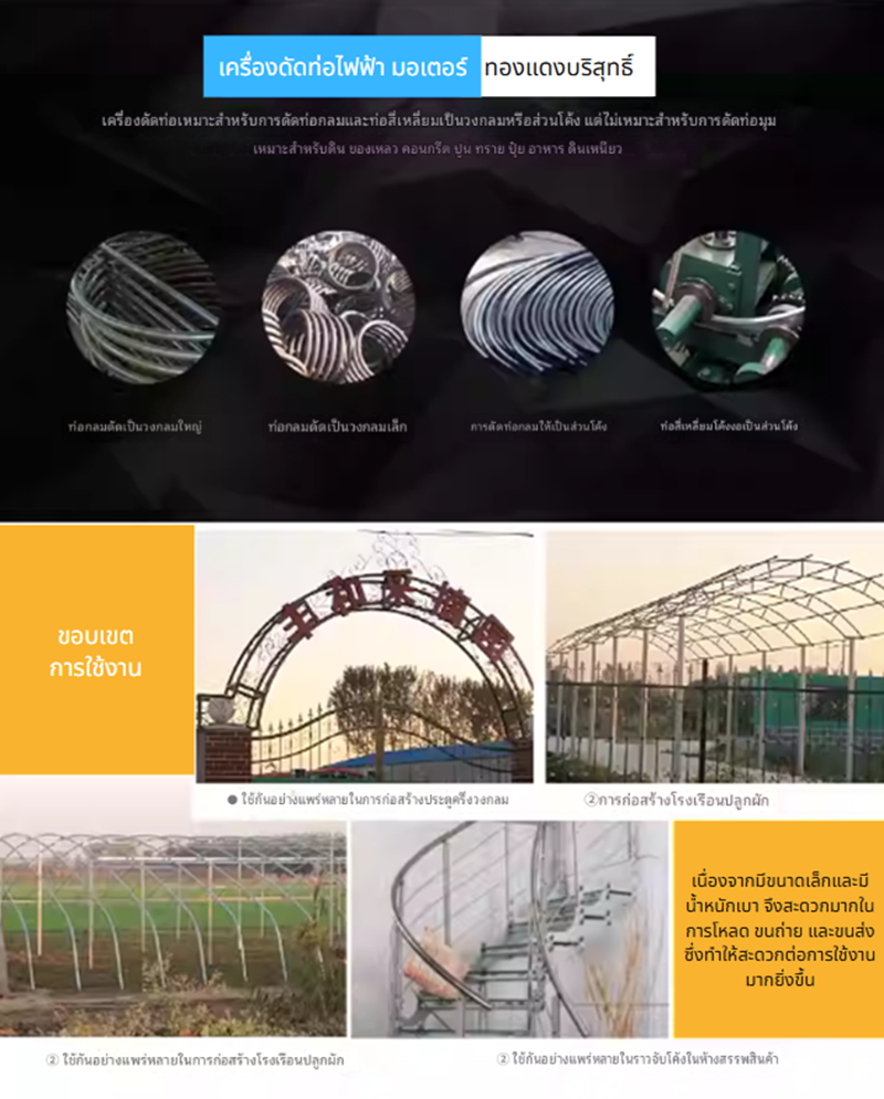 เครื่องดัดท่อไฟฟ้าอัตโนมัติ ใช้งานง่าย ดัดท่อได้หลากหลายวัสดุ เช่น เหล็ก สแตนเลส อลูมิเนียม ทองแดง เหมาะสำหรับงานก่อสร้าง งานเดินท่อ และอุตสาหกรรมทั่วไป ควบคุมการดัดอย่างแม่นยำด้วยระบบไฟฟ้า ลดแรงงานคน เพิ่มประสิทธิภาพการทำงาน