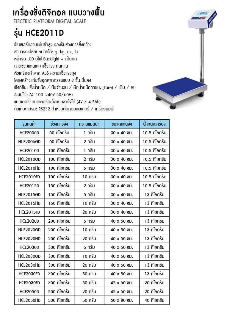 เครื่องชั่งดิจิตอล แบบวางพื้น Electric Platform Digital Scale รุ่น HCE2011D