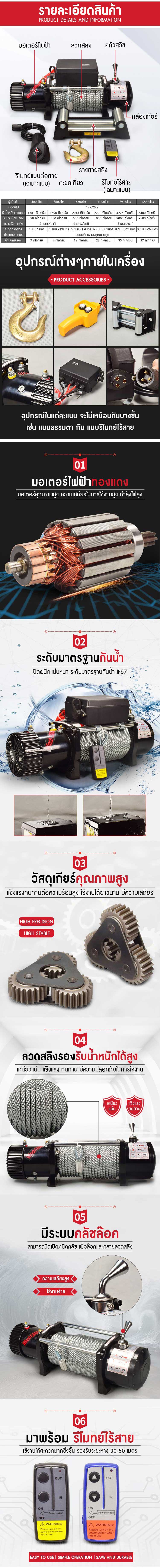 ช่วยขนย้ายสิ่งของหรือลากรถยนต์ในกรณีรถเสียได้ ด้วยรอกสลิงไฟฟ้าขนาดเล็กสายสลิงเหล็กแรงดึงสูง สามารถลากสิ่งของที่มีน้ำหนักมากๆได้ ควบคุมการทำงานด้วยรีโมทคอนโทลสำหรับเปิด-ปิดเครื่อง เหมาะสำหรับเป็นเครื่องทุ่นแรงในการขนย้ายสิ่งของที่มีน้ำหนักมาก มีหลากหลายรุ่นให้เลือกตามความต้องการ