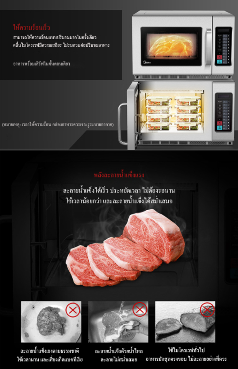 อุ่นอาหารได้รวดเร็วและทั่วถึง ตัวเครื่องผลิตจากสแตนเลสสตีล แข็งแรง ทนทานต่อการใช้งานต่อเนื่อง
