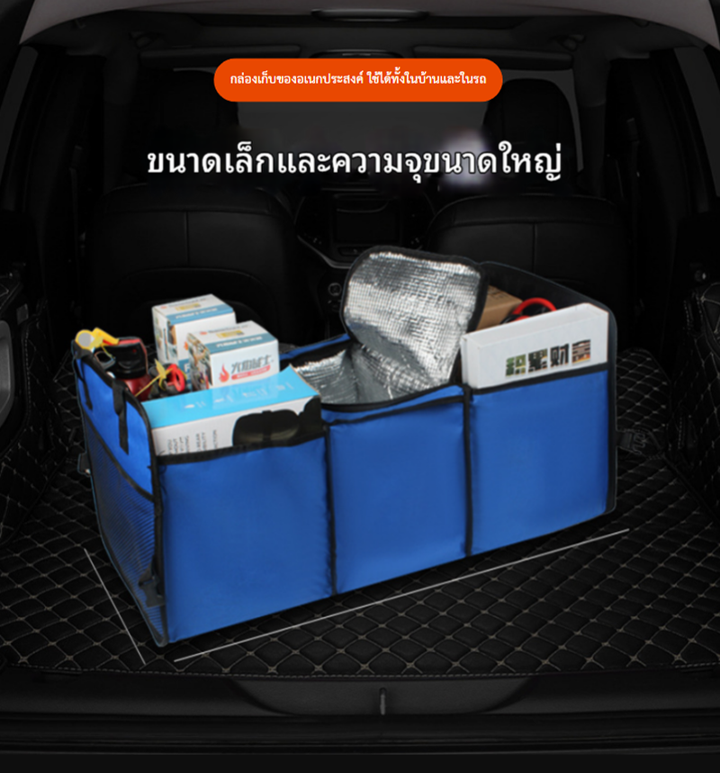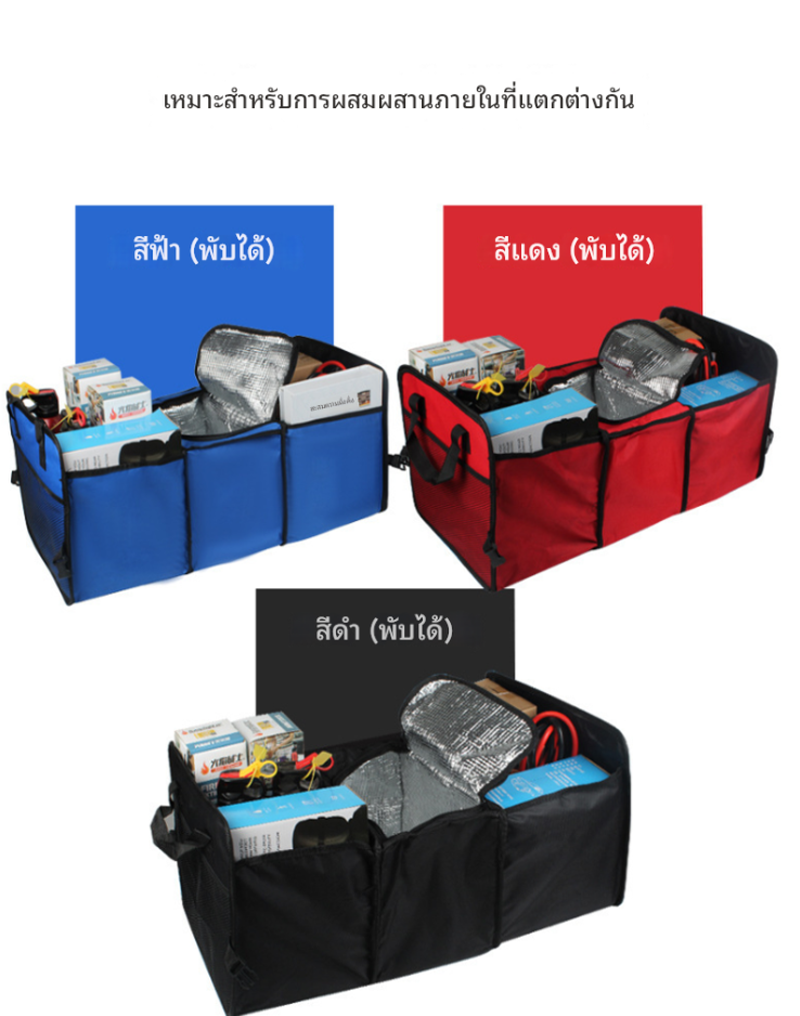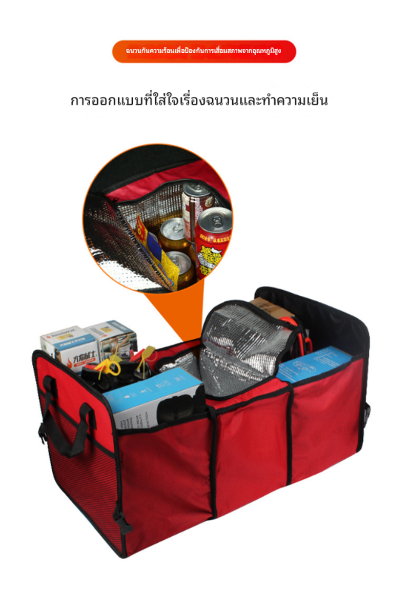 ถุงเก็บของอเนกประสงค์สำหรับวางท้ายรถยนต์ รุ่น BY-141 มาพร้อมพื้นที่จัดเก็บ 3 ช่องหลัก และช่องฟอยล์เก็บความเย็น ใช้งานได้ทั้งใส่ของใช้จำเป็น อุปกรณ์ฉุกเฉิน หรือของชำจากซูเปอร์มาร์เก็ต พับเก็บได้เมื่อไม่ใช้งาน ประหยัดพื้นที่ เหมาะสำหรับรถยนต์ทุกรุ่น