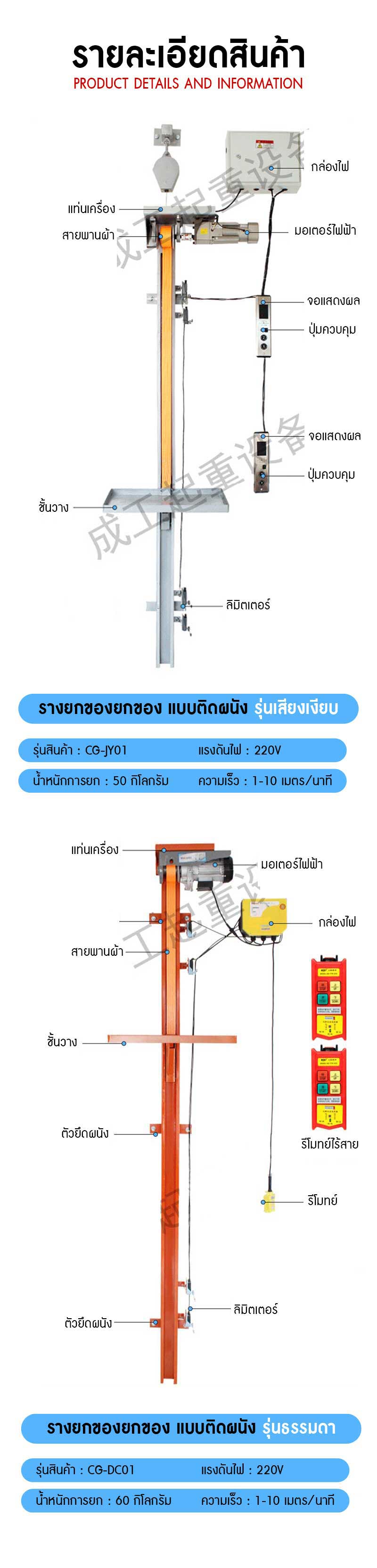 รอกไฟฟ้ายึด พร้อมรางและระบบไฟฟ้า ผนัง ส่งอาหาร ถังน้ำ food transfer machine lift with rails