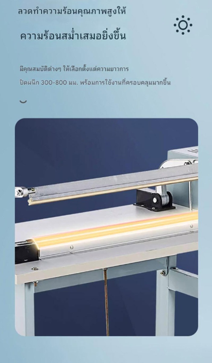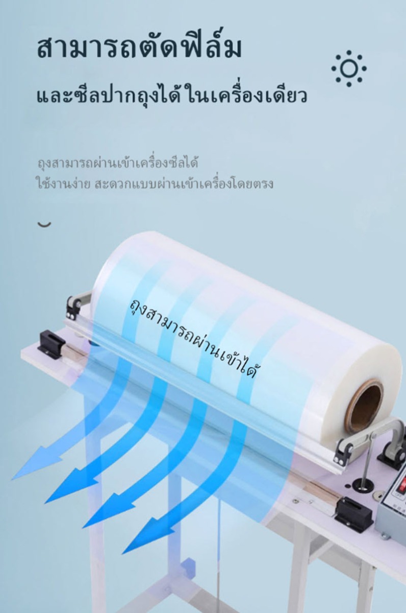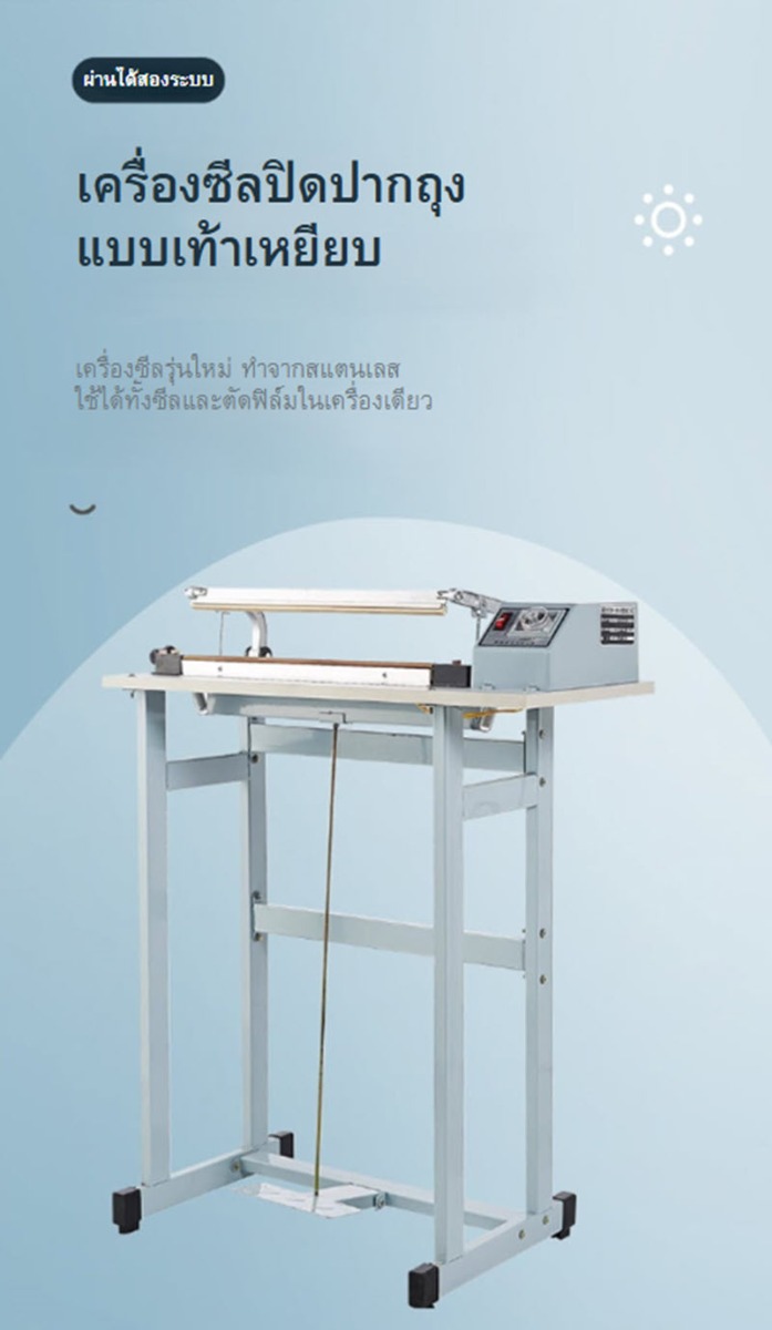 เครื่องซีลถุงแบบเท้าเหยียบ รุ่นผ่านถุงได้ในตัว ใช้งานสะดวก สามารถซีลและตัดฟิล์มได้ในเครื่องเดียว เหมาะสำหรับบรรจุภัณฑ์ทั่วไป ใช้งานง่าย แข็งแรง ทนทาน