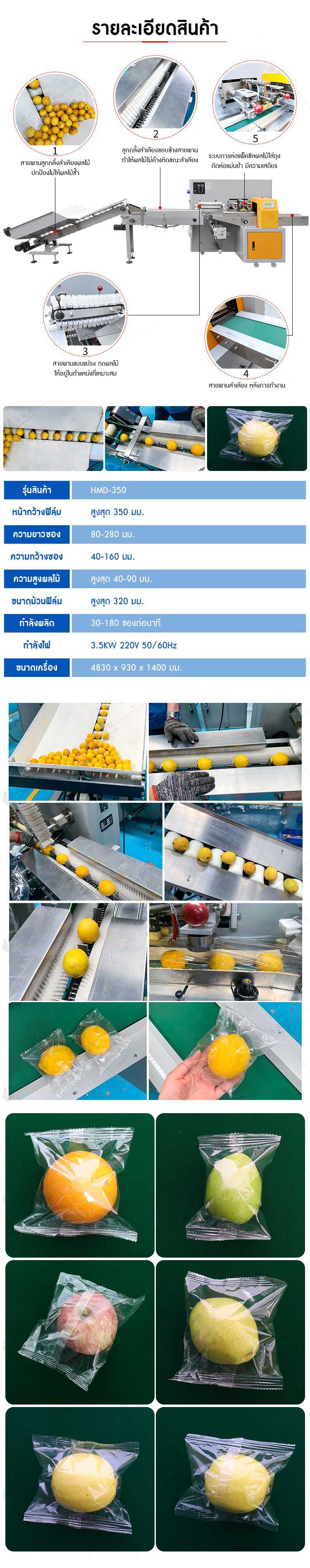 เครื่องห่อแพ็คผลไม้ Fruit Packing Machine เครื่องแพ็คส้ม แบบออโต้ และ กึ่งออโต้ รุ่น HMD-350