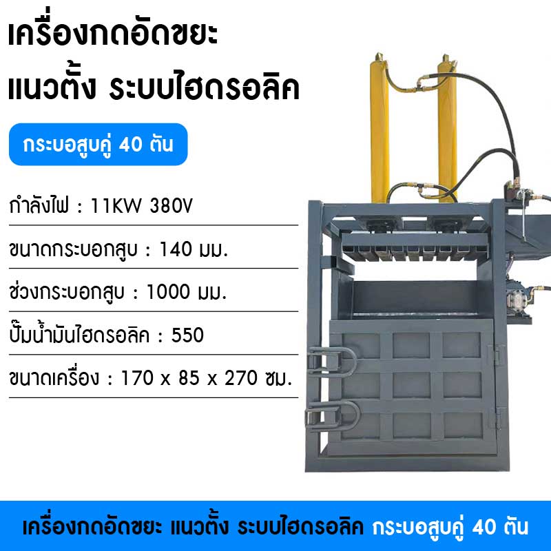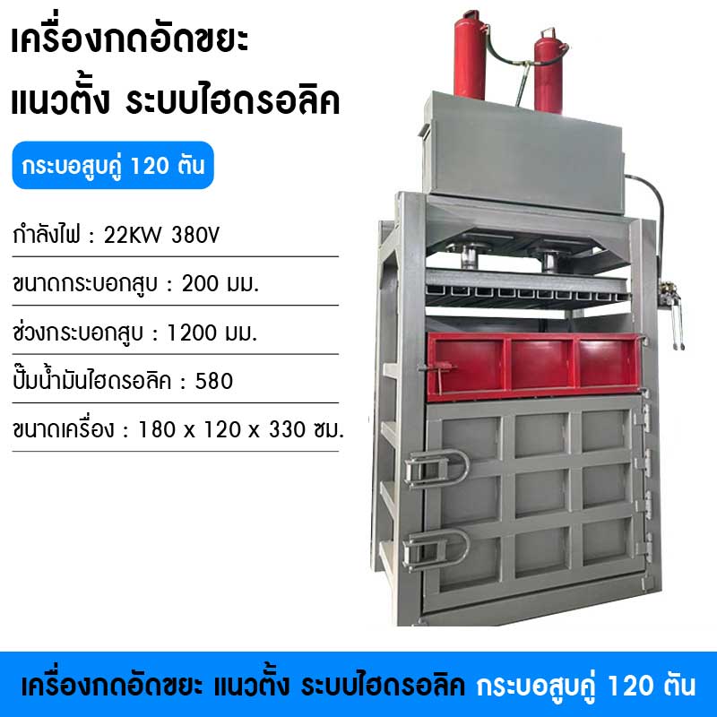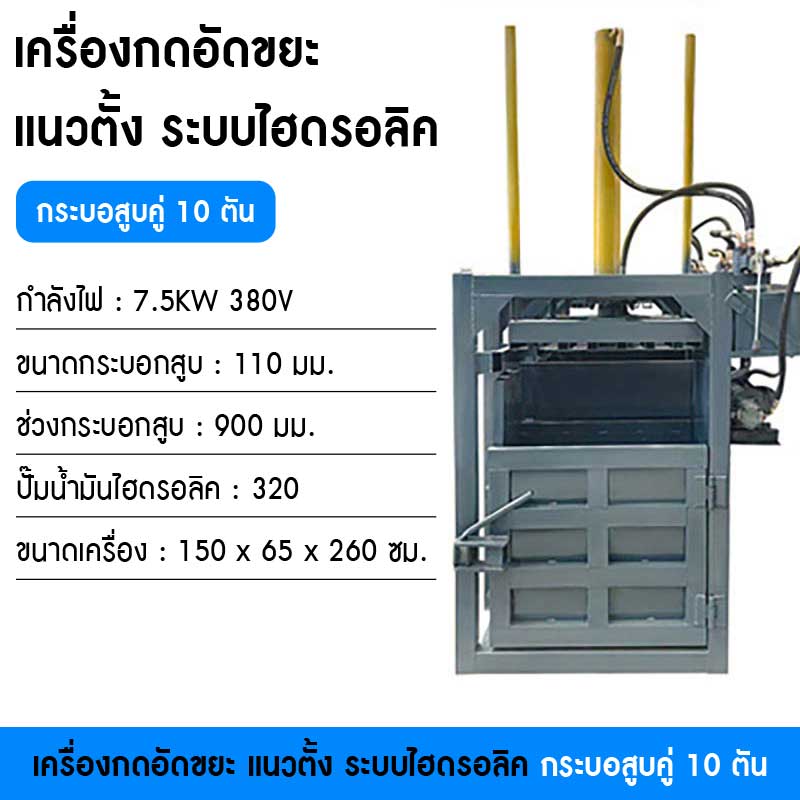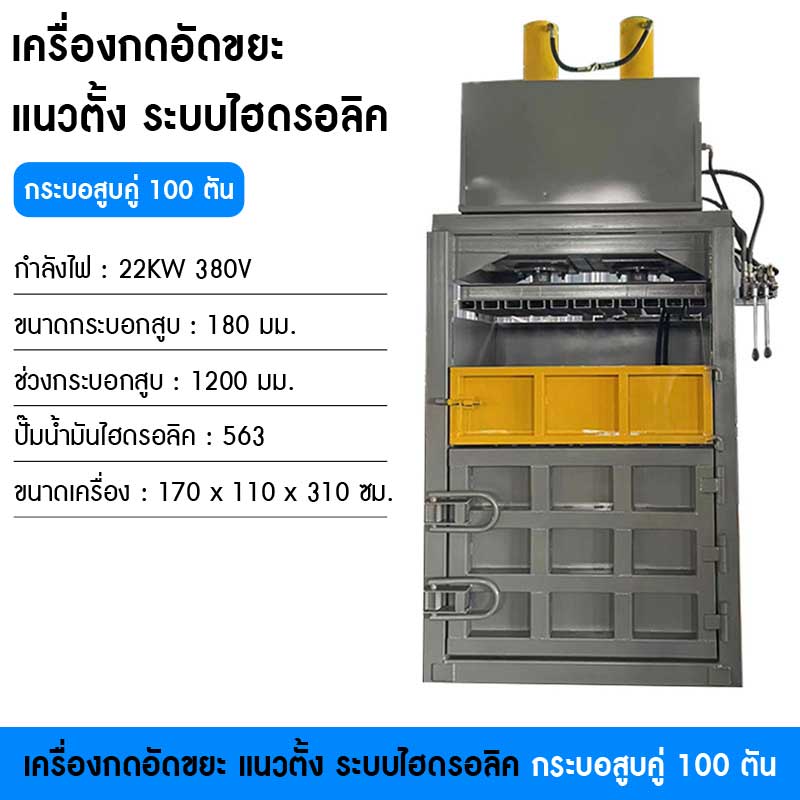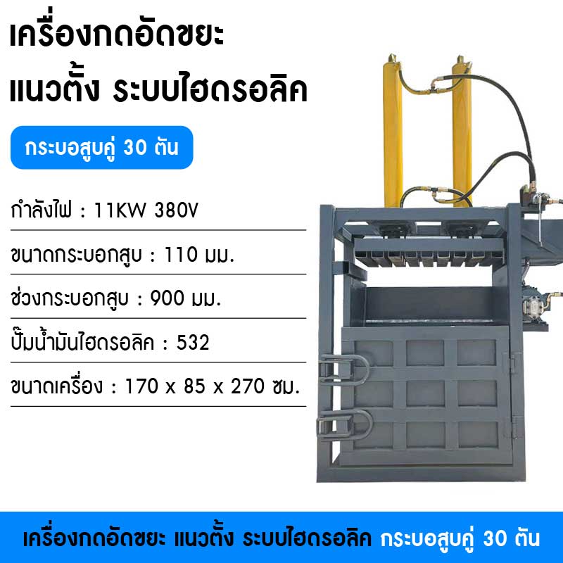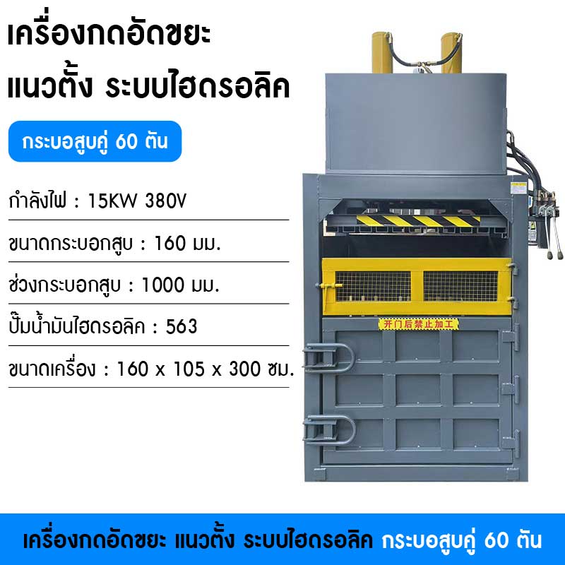 เครื่องอัดขยะ เครื่องอัดลังกระดาษ ระบบไฮดรอลิค กระบอกสูบคู่ Garbage compression waste paper hydraulic baler vertical