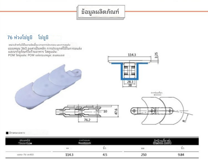 เหมาะสำหรับสายพานส่งสินค้าในอุตสาหกรรมอาหาร เครื่องดื่ม และบรรจุภัณฑ์