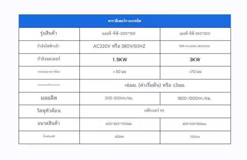 กำลังผลิต 200-500 กิโลกรัม / ชั่วโมง