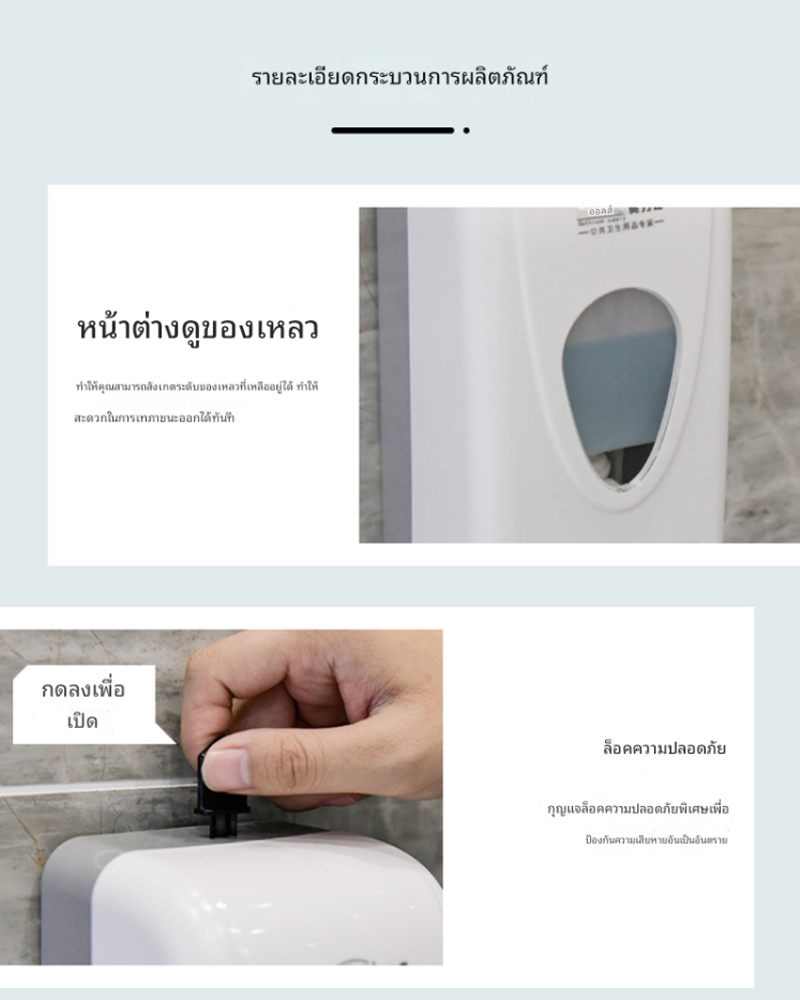 • หากใช้ในร้านอาหารหรือสำนักงาน ควรเลือกสีฟ้าครึ่งใสเพื่อง่ายต่อการตรวจเช็กระดับสบู่