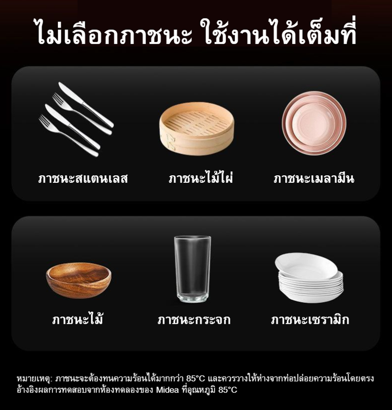 • อย่าใช้กับภาชนะที่ไม่ทนความร้อน เช่น พลาสติกบางประเภท หรือวัสดุไวไฟ