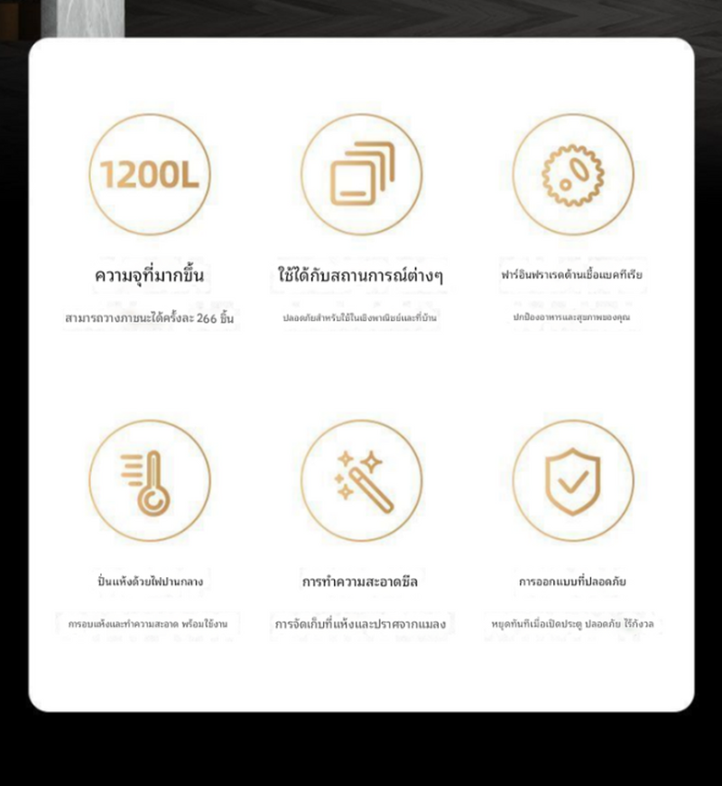 • ปิดประตูตู้ให้สนิท จากนั้นระบบจะเริ่มฆ่าเชื้อด้วยความร้อน 70°C และโอโซน