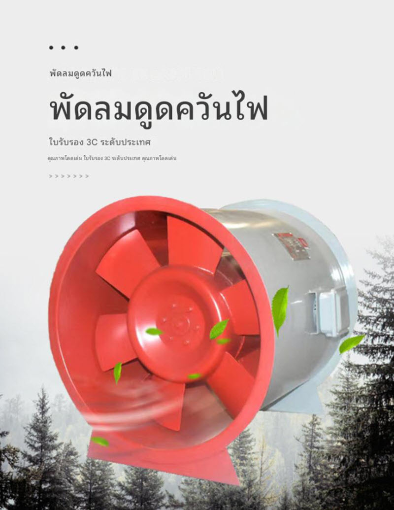 พัดลมระบายควันดับเพลิงอุณหภูมิสูง รุ่น HTF-I-9 ออกแบบมาเพื่อรองรับการระบายควันจากเพลิงไหม้หรือพื้นที่ที่มีอุณหภูมิสูง โครงสร้างแข็งแรงทำจากเหล็กกล้าคาร์บอน ใช้ในระบบความปลอดภัยของอาคารสูง ห้างสรรพสินค้า โรงงาน และอุโมงค์ต่างๆ ให้ปริมาณลมสูงถึง 33,000 ลูกบาศก์เมตรต่อชั่วโมง ใช้ไฟ 380V และกำลังไฟ 11kW