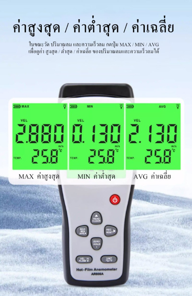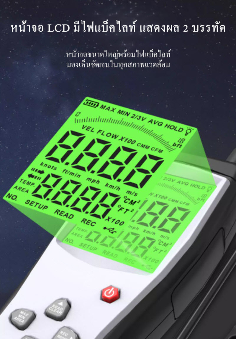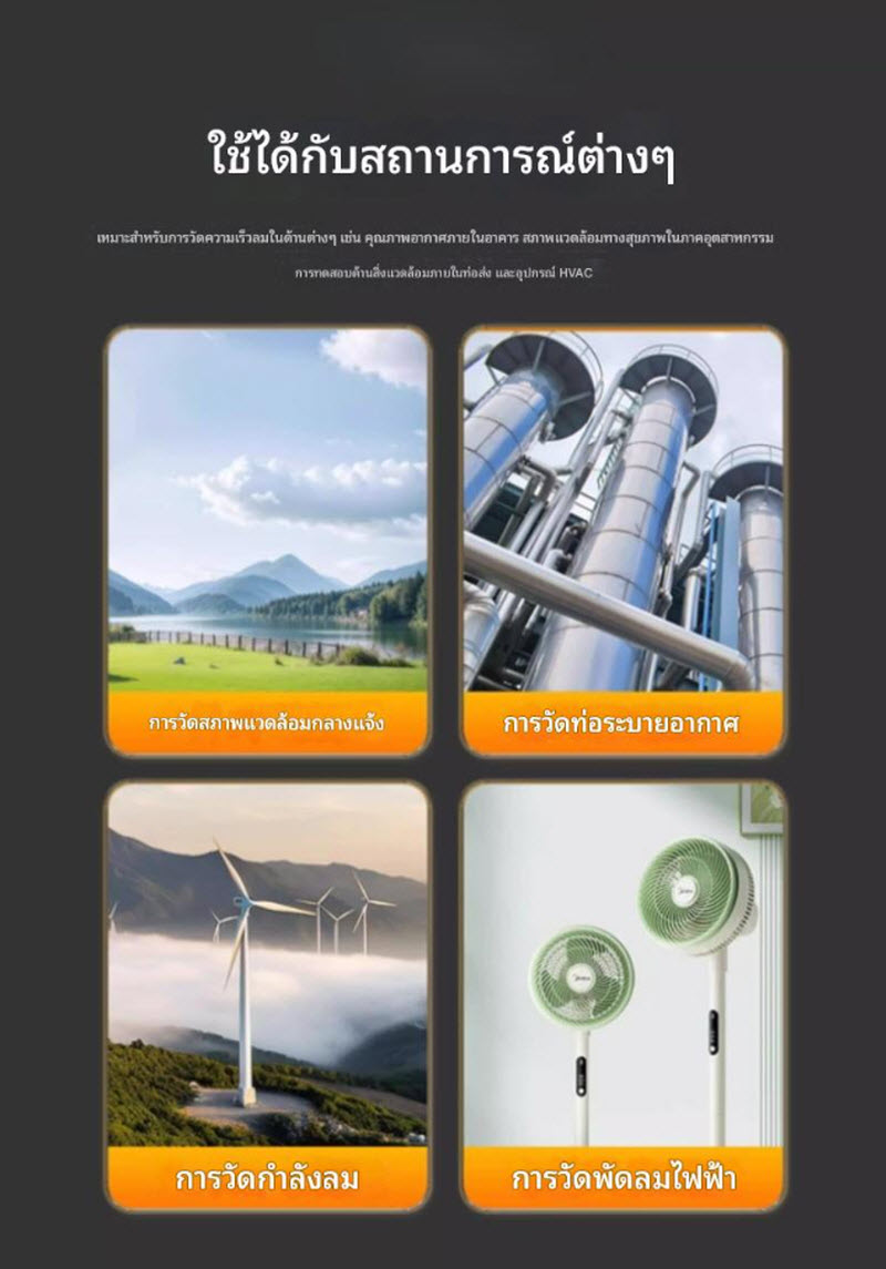 ฟังก์ชันการทำงาน: วัดความเร็วลม / อุณหภูมิลม / ปริมาณลม