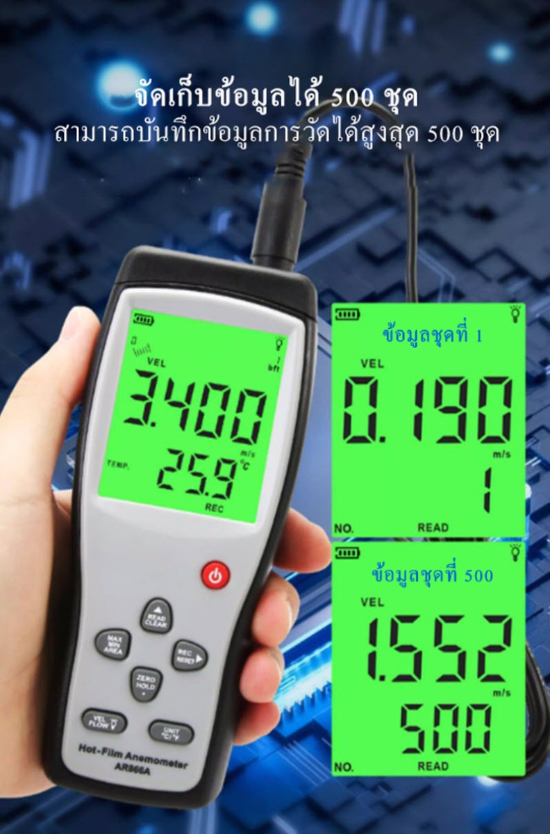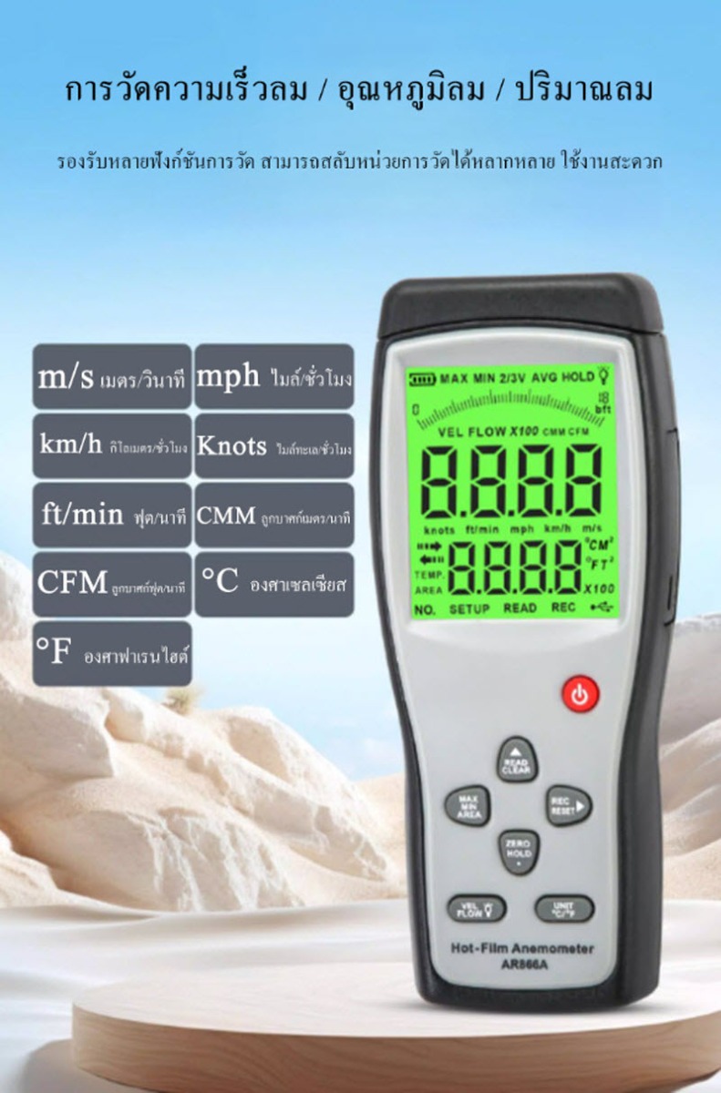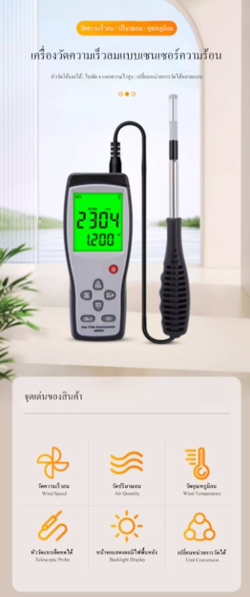 เครื่องวัดความเร็วลมแบบลวดความร้อน เหมาะสำหรับงานตรวจวัดระบบระบายอากาศ ระบบปรับอากาศ และงานวิศวกรรมที่ต้องการความแม่นยำสูง สามารถวัดความเร็วลม อุณหภูมิลม ปริมาณลมได้ในเครื่องเดียว มาพร้อมด้ามจับเซนเซอร์แบบยืดหดได้ ช่วยให้เข้าถึงจุดวัดได้สะดวก ใช้งานง่าย พกพาสะดวก