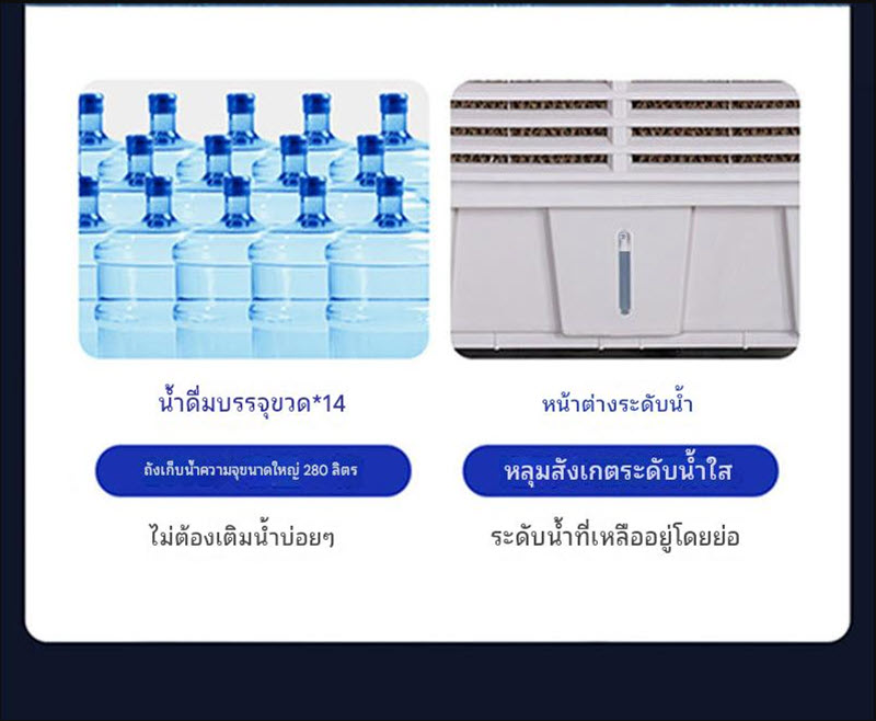 พื้นที่ขนาดใหญ่ ให้ปริมาณลมแรงถึง 22,000 ลบ.ม./ชม. พร้อมใบพัด 3 ใบใหญ่ และแผ่นรังผึ้งหนาพิเศษ 16 ซม. ระบายความร้อนเร็ว ประหยัดพลังงาน