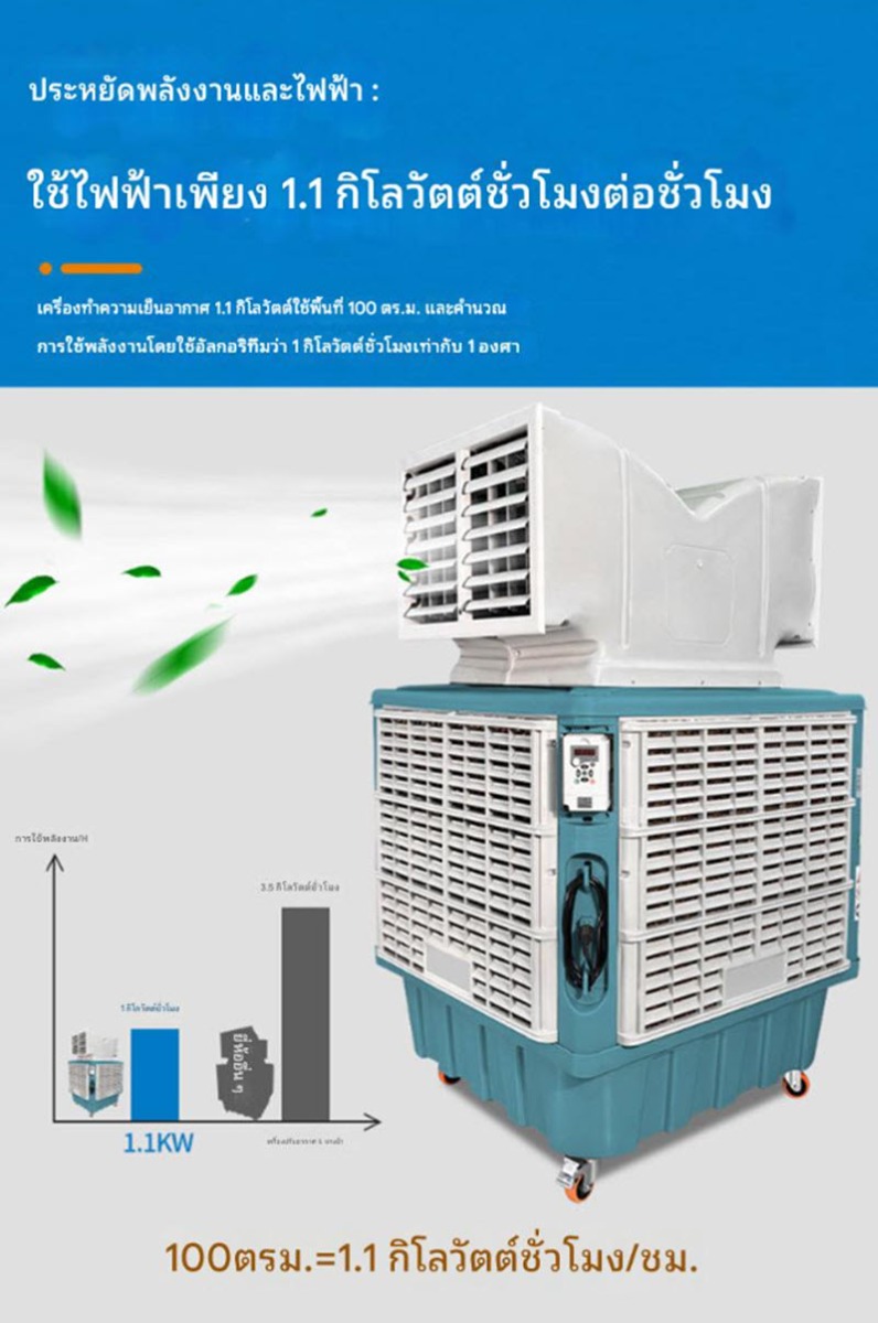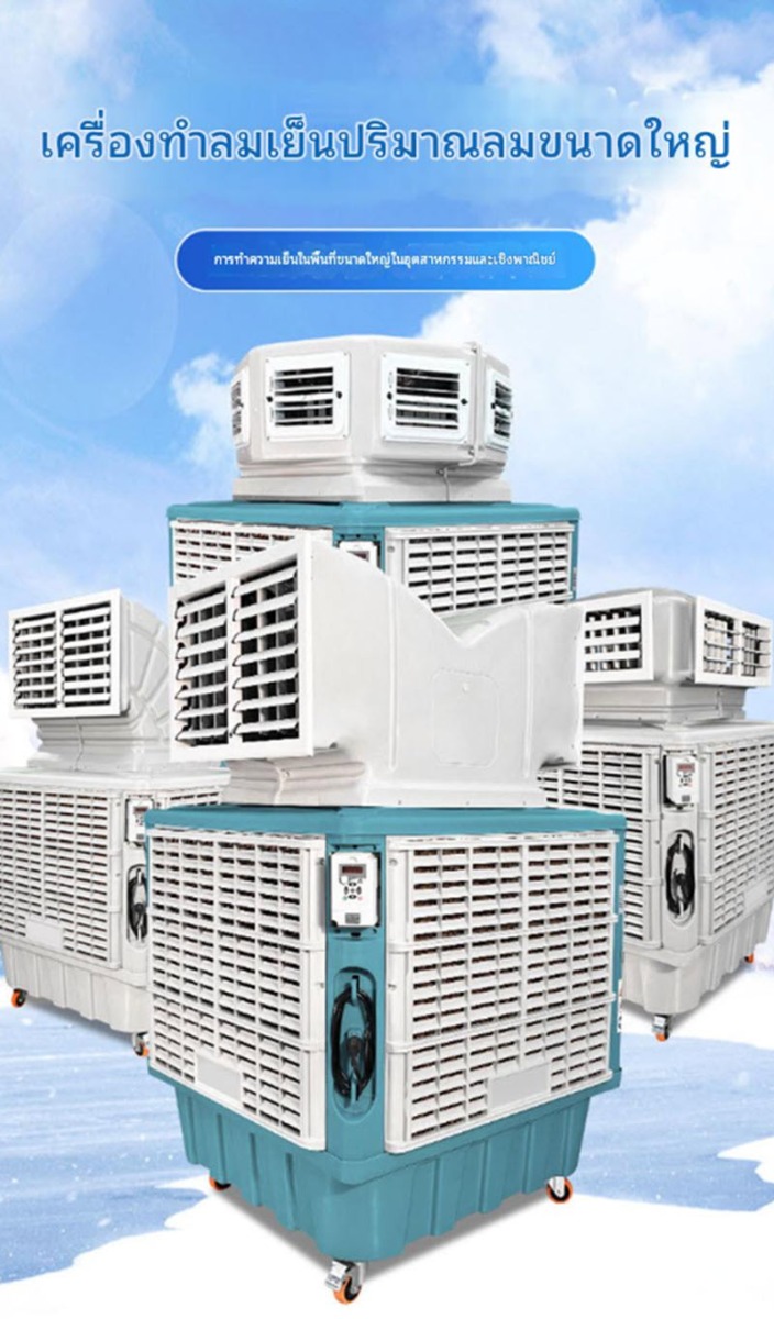 เครื่องทำลมเย็นอุตสาหกรรม รุ่นเรือธงลมออกด้านเดียว ขนาด 1.5kW เหมาะสำหรับโรงงาน โกดัง และพื้นที่ขนาดใหญ่ ให้ปริมาณลมแรงถึง 22,000 ลบ.ม./ชม. พร้อมใบพัด 3 ใบใหญ่ และแผ่นรังผึ้งหนาพิเศษ 16 ซม. ระบายความร้อนเร็ว ประหยัดพลังงาน