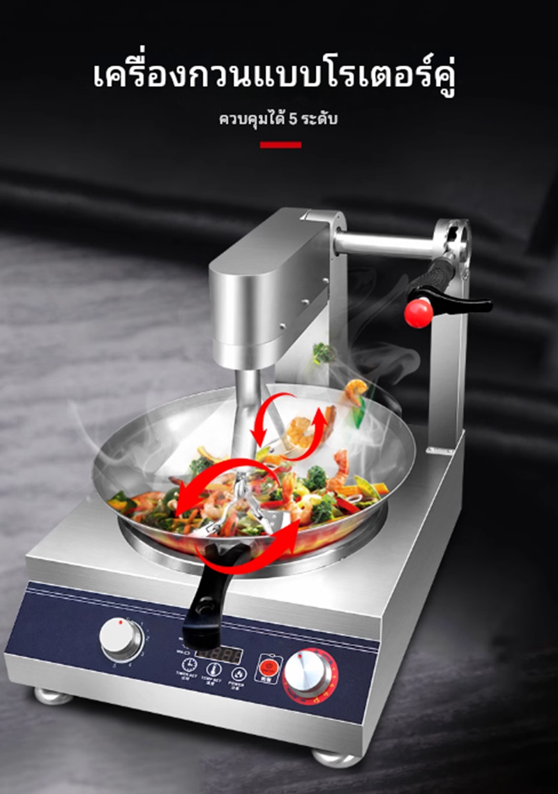 เครื่องผัดอัตโนมัติ – เครื่องกวนและผัดอัตโนมัติระดับอุตสาหกรรม ออกแบบมาเพื่อช่วยให้การกวนและผัดอาหารมีประสิทธิภาพ รวดเร็ว และสม่ำเสมอ เหมาะสำหรับการผลิตอาหาร เช่น ซอส ไส้ขนม อาหารผัดต่างๆ ตัวเครื่องทำจากสแตนเลสเกรดอาหาร สามารถปรับระดับความเร็วและอุณหภูมิได้ตามต้องการ รองรับการใช้งานในโรงงานอาหารและอุตสาหกรรมแปรรูปอาหาร