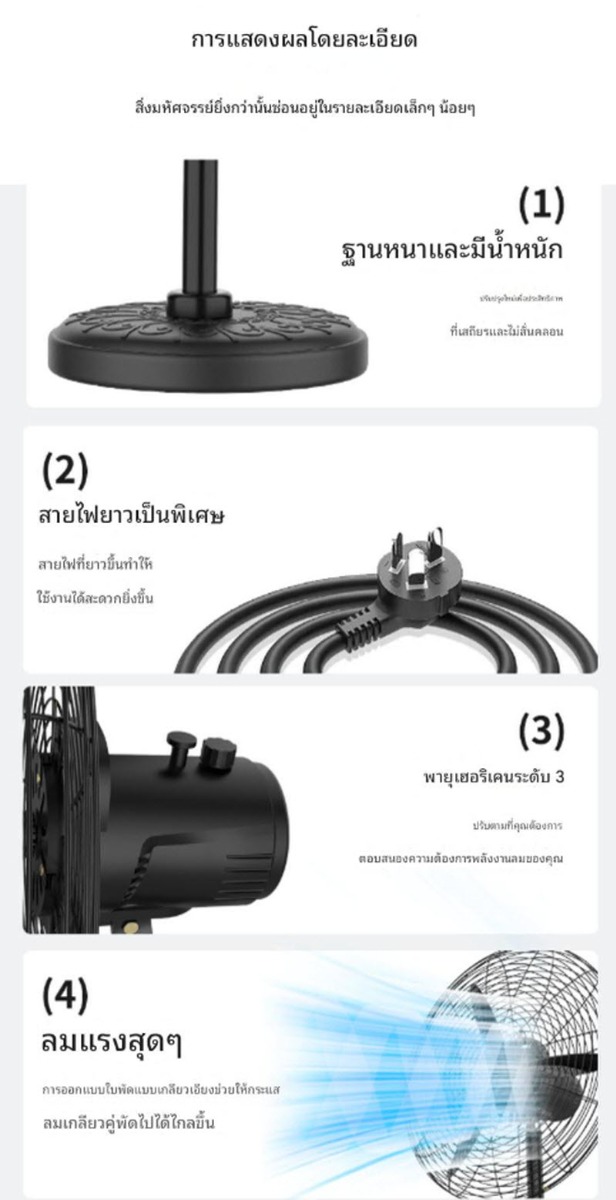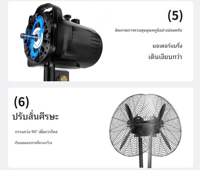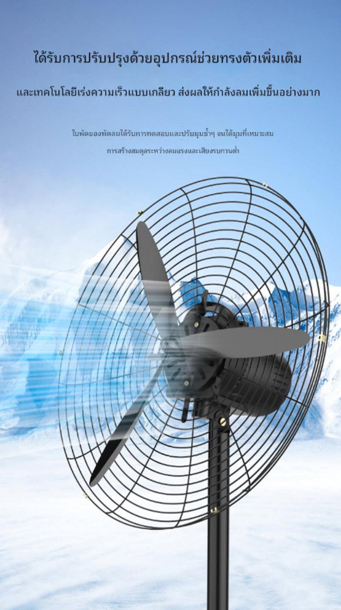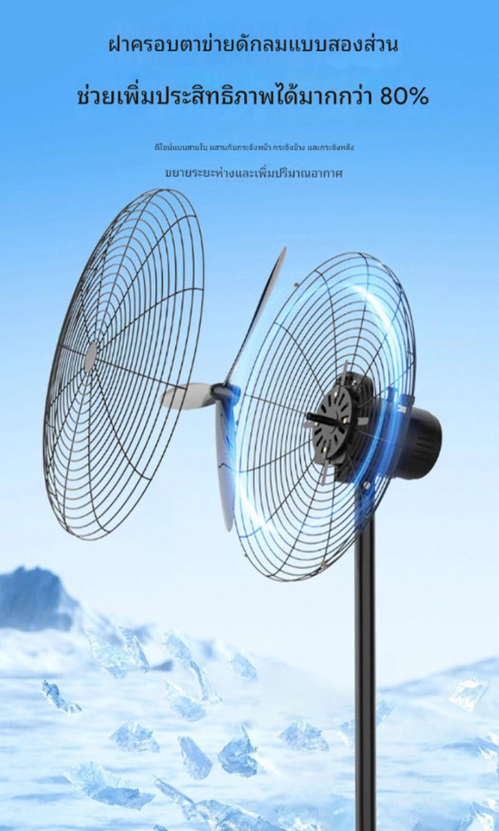 พัดลมอุตสาหกรรมแบบตั้งพื้น ขนาด 500 มม. ให้ลมแรง กระจายลมได้กว้าง เหมาะสำหรับโรงงาน โกดัง คลังสินค้า และพื้นที่ทำงานขนาดใหญ่ โครงสร้างแข็งแรง ใช้งานต่อเนื่องได้ดี ช่วยระบายอากาศและลดความร้อนในพื้นที่อุตสาหกรรมอย่างมีประสิทธิภาพ