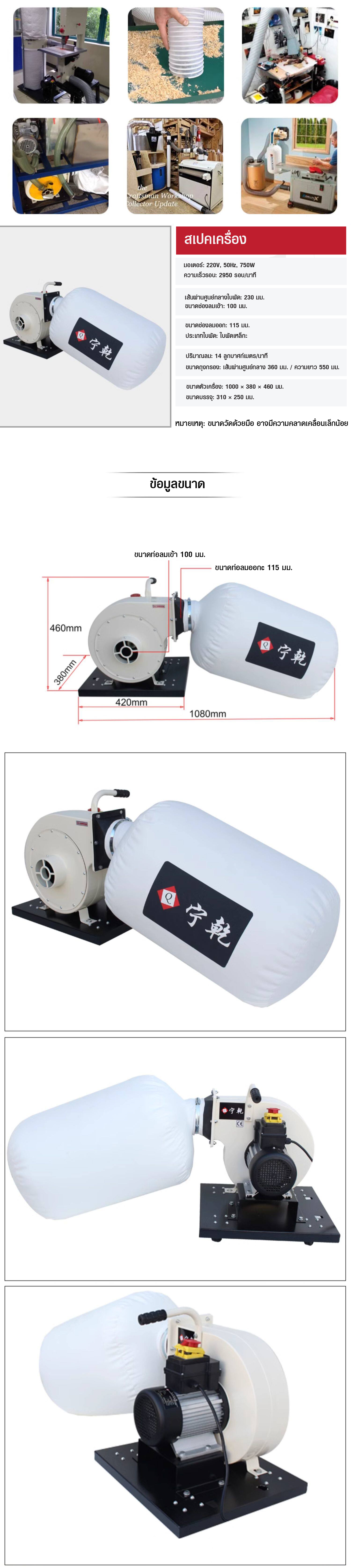 ขนาดถุงกรองฝุ่น : เส้นผ่านศูนย์กลาง 500 mm / ยาว 1000 mm