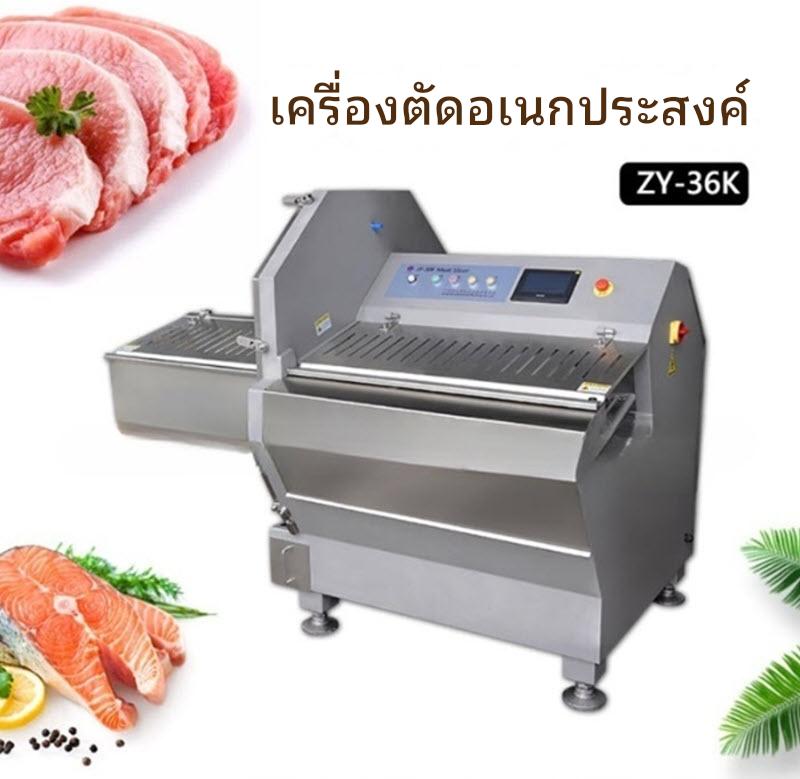 เครื่องตัดชิ้นเนื้ออเนกประสงค์ รุ่น JY-36K ออกแบบมาสำหรับอุตสาหกรรมอาหาร สามารถตัดเนื้อได้หลายรูปแบบ ปรับความหนาได้ตั้งแต่ 0-30 มม. พร้อมกำลังไฟ 5.5kW และระบบไฟฟ้าสามเฟส 380V รองรับอุณหภูมิการตัดต่ำสุด -6°C เหมาะสำหรับการผลิตเนื้อแช่แข็งและแปรรูปอาหาร