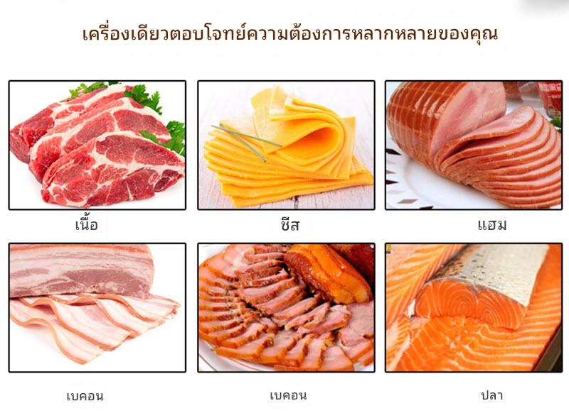 ออกแบบมาสำหรับอุตสาหกรรมอาหาร สามารถตัดเนื้อได้หลายรูปแบบ ปรับความหนาได้ตั้งแต่ 0-30 มม.