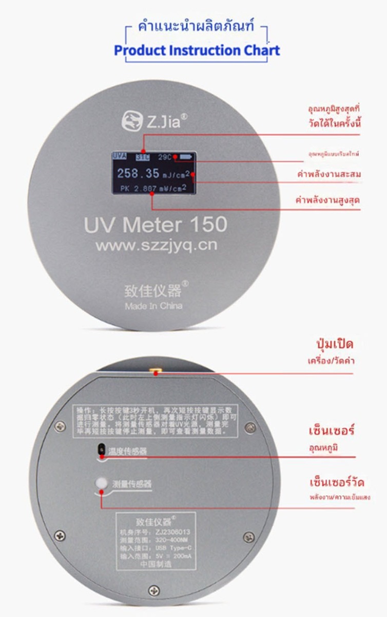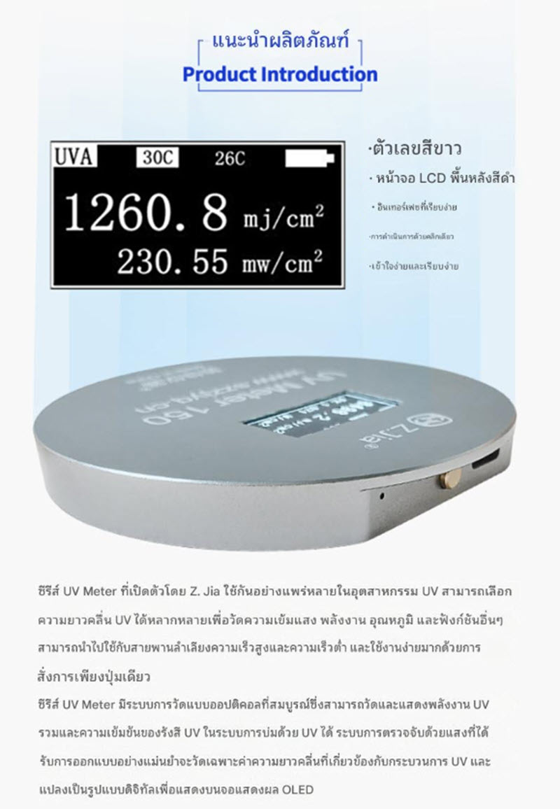 ออกแบบมาสำหรับตรวจวัดความเข้มแสงและพลังงานสะสมจากแหล่งกำเนิดแสง UV LED โดยเฉพาะ รองรับความยาวคลื่น 365/380/395/405nm พร้อมหน้าจอ LCD