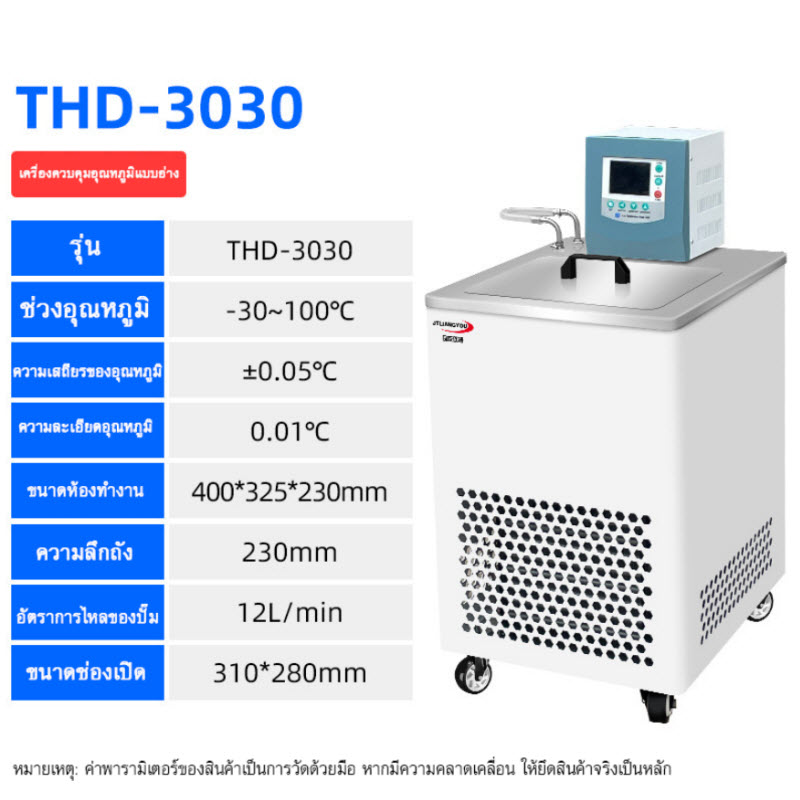 อ่างควบคุมอุณหภูมิต่ำ รุ่น THD-3030 ออกแบบสำหรับควบคุมอุณหภูมิของของเหลวได้อย่างแม่นยำ รองรับช่วงอุณหภูมิตั้งแต่ -30°C ถึง +100°C เหมาะสำหรับงานห้องแล็บ งานวิจัย งานทดสอบ และอุตสาหกรรมที่ต้องการควบคุมอุณหภูมิอย่างละเอียด ระบบควบคุมมีความเสถียรสูง พร้อมปั๊มหมุนเวียนภายในเพื่อกระจายอุณหภูมิให้สม่ำเสมอ